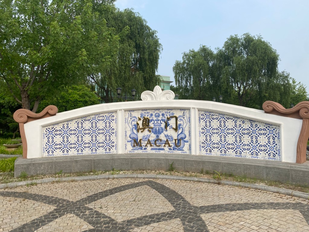 Refaisant ma route à l’envers pour rentrer, je croise le jardin dédié à Macau. Comme j’ai eu l’occasion de visiter la ville, j’ai pu apprécier le condensé présenté ici, (presque) tout y était, sous forme parfois symbolique.