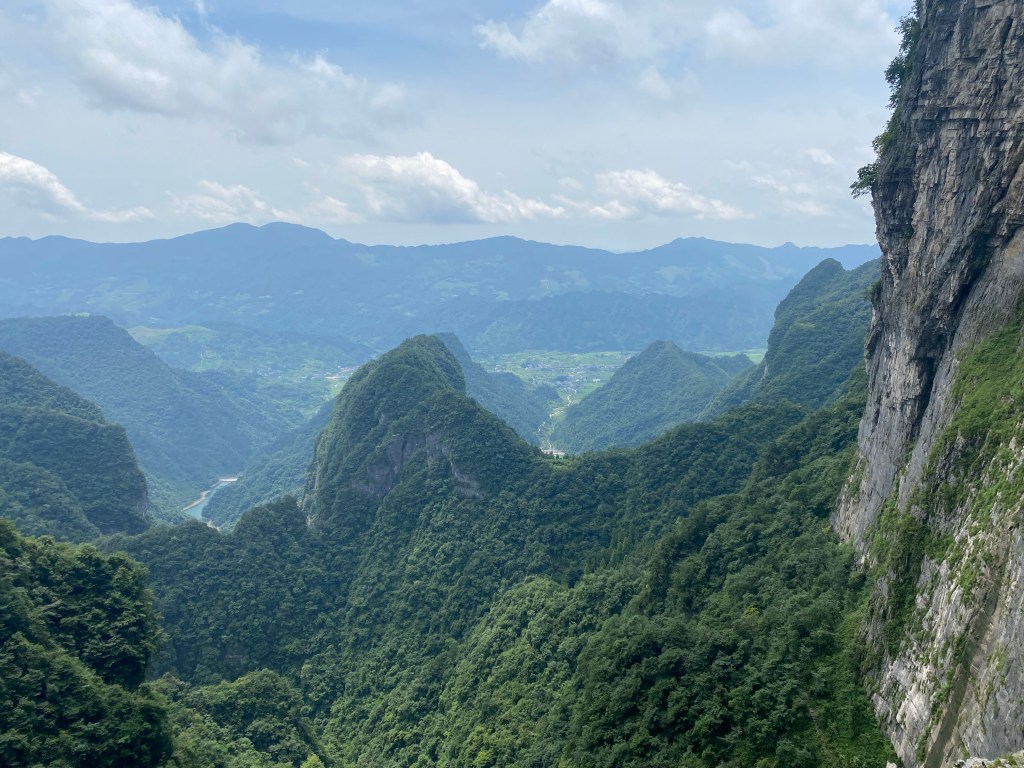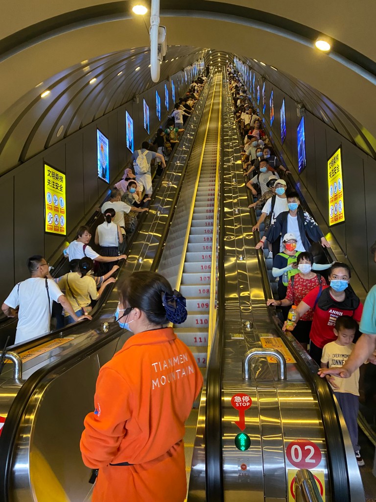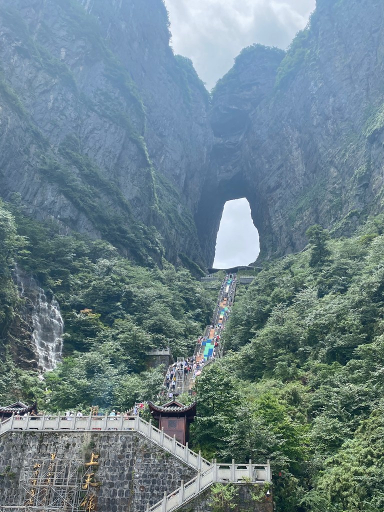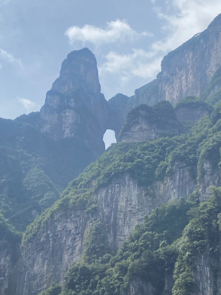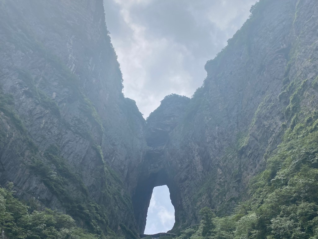 Après avoir arpenté les montagnes de Zhangjiajie (voir mon article précédent), nous nous sommes rendus dans l’autre parc national, qui jouxtait le premier, celui de la montagne Tian Men (littéralement, la porte du ciel).