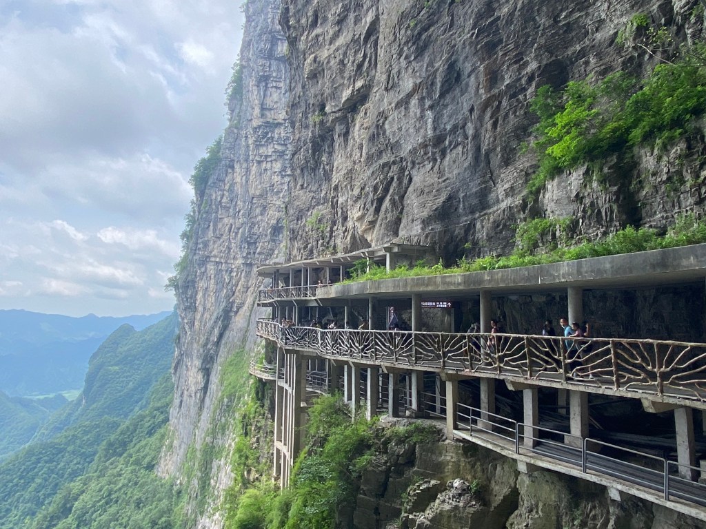 Comme toujours ici, le tourisme est encadré, ne croyez pas que vous pouvez vous aventurer au petit bonheur la chance, vous êtes guidés le long de promontoires accrochés au flanc de la montagne (j’imagine le travail des ouvriers pour construire ces degrés les uns après les autres, en les fixant dans la roche pour que des personnes comme moi ou d’autres puissent jouir de ces vues).