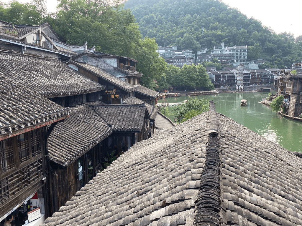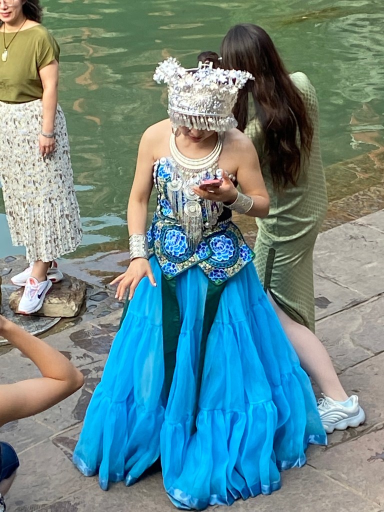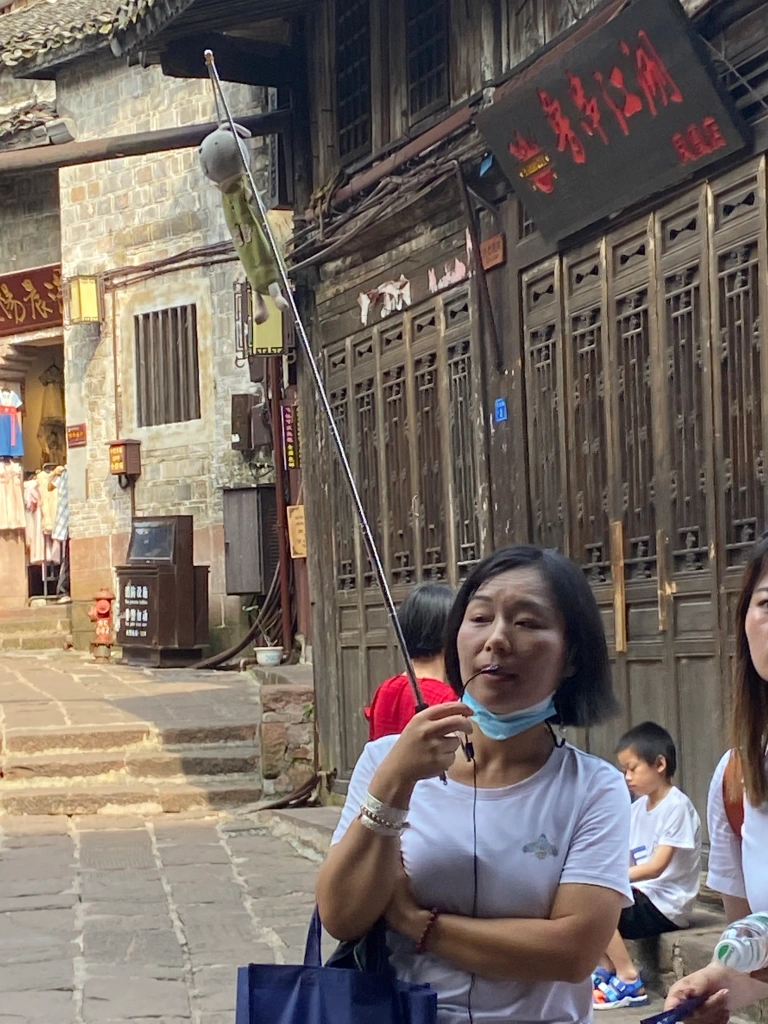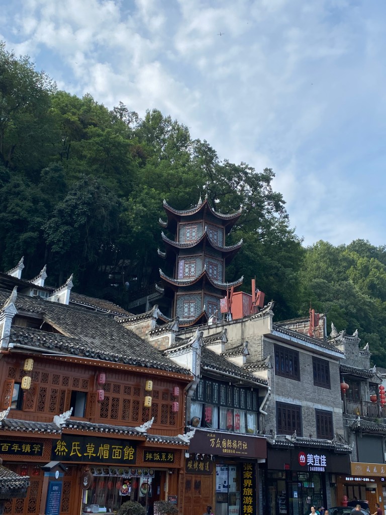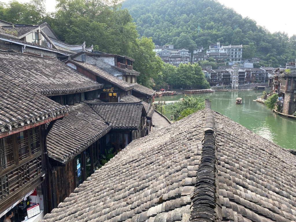 Ici, le peuplement n’est plus majoritairement « Han » (l’ethnie majoritaire en Chine à 92%) mais « Miao » (le peuple qui a découvert comment faire pousser du riz, ils en tirent leur nom, « Miao », 苗 signifiant « petite pousse ») et « Tujia » (土家族, peuple de la terre, en traduction libre). C’est d’ailleurs ici que se trouve l’épicentre de la révolte du peuple Miao contre les Mandchous au milieu du XIXe siècle, violemment réprimée (toute l’histoire de la Chine réside ici, comment absorber les minorités dans cet ensemble immense équivalent à l’Europe, vous connaissez les dernières vicissitudes avec ce qui se passe dans le Xinjiang). Ainsi, de la vie de ces ethnies ici, il ne reste rien de distinctif que j’ai pu apercevoir, à part le folklore -mais je suis restée bien peu de temps ; nous verrons bien des boutiques nous proposer leurs costumes, mais sans vraiment d’authenticité.