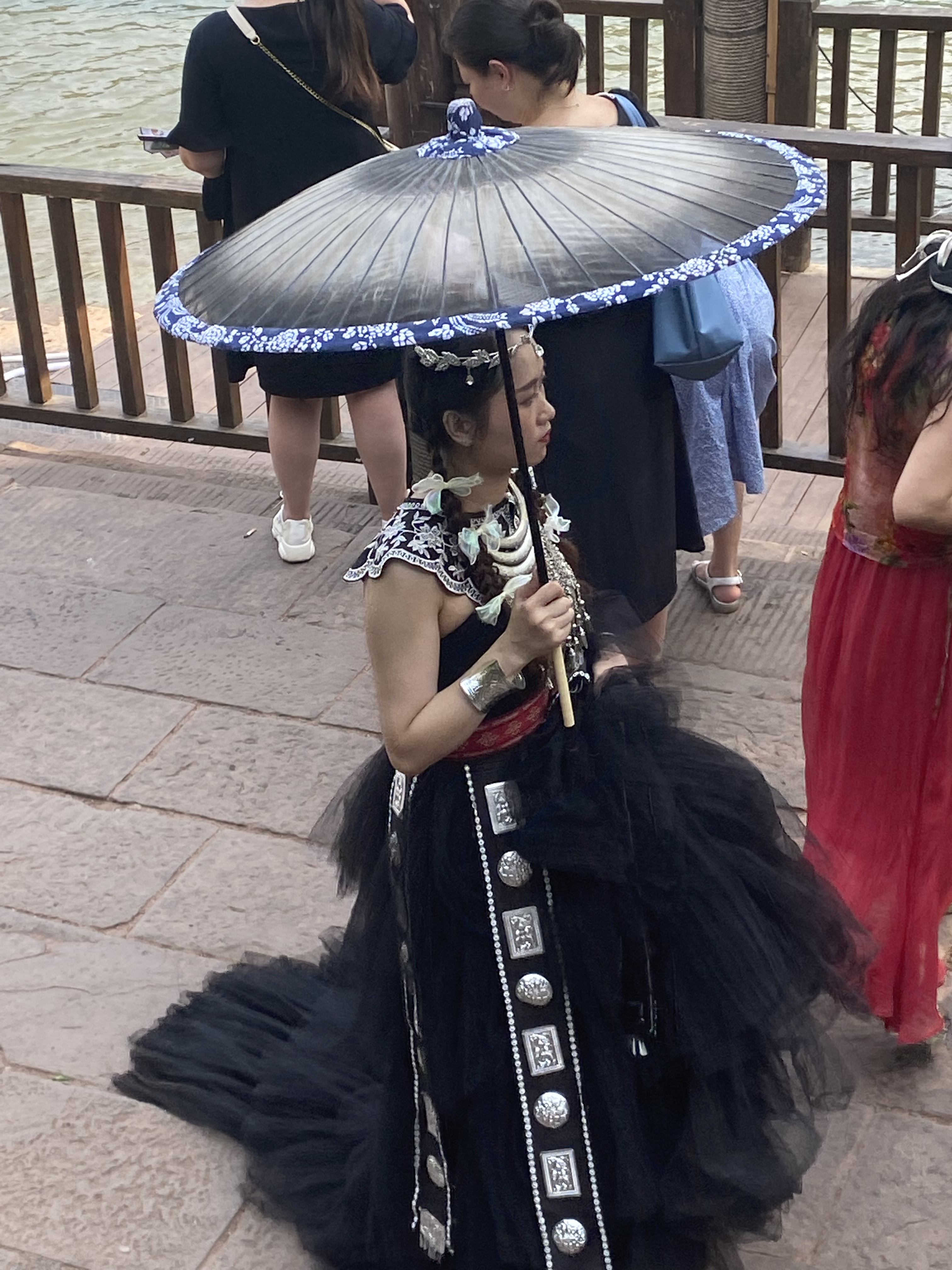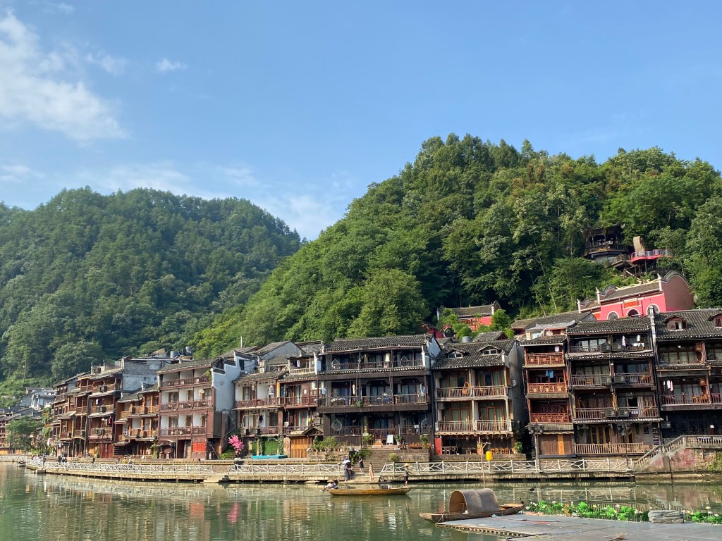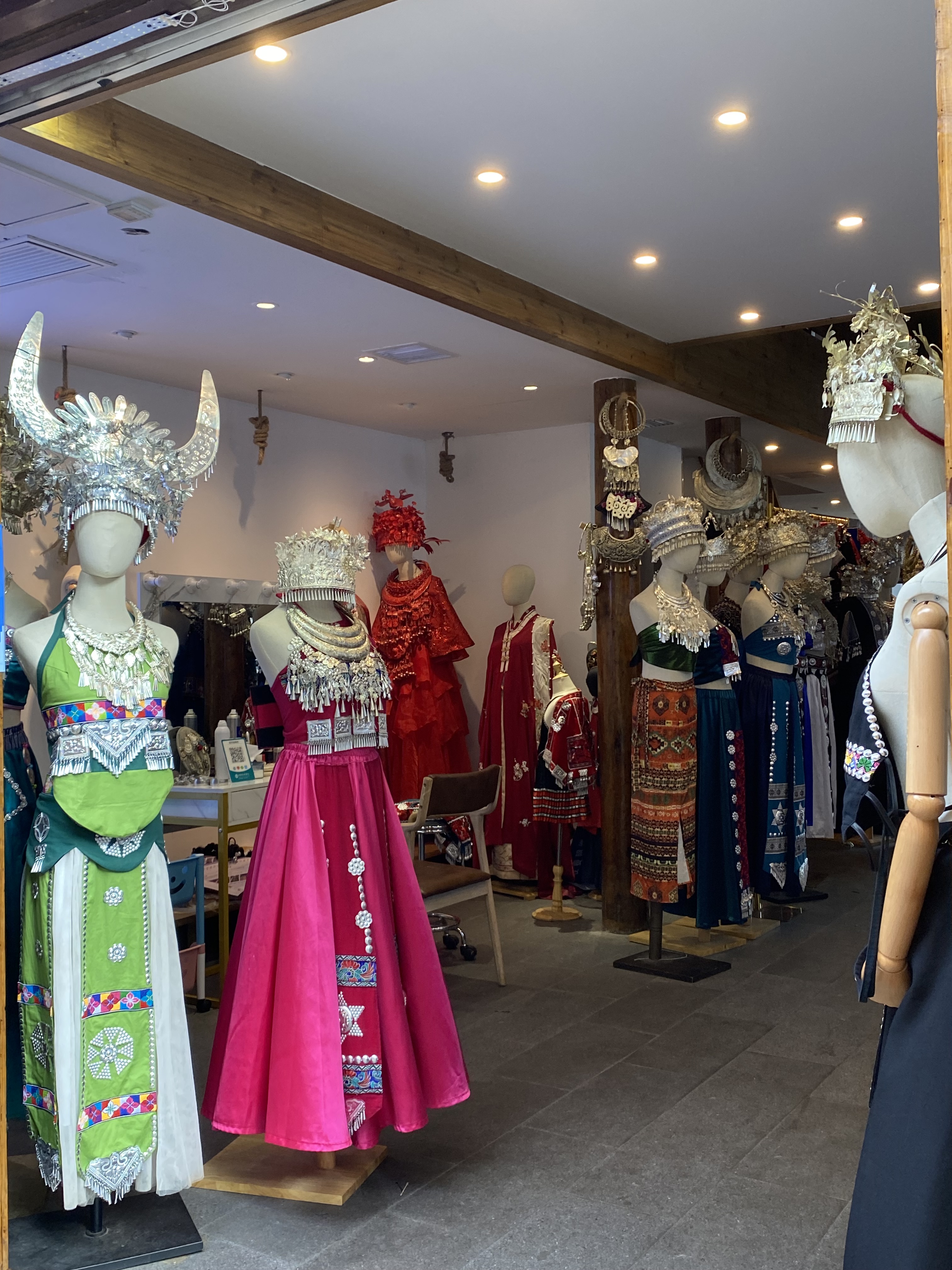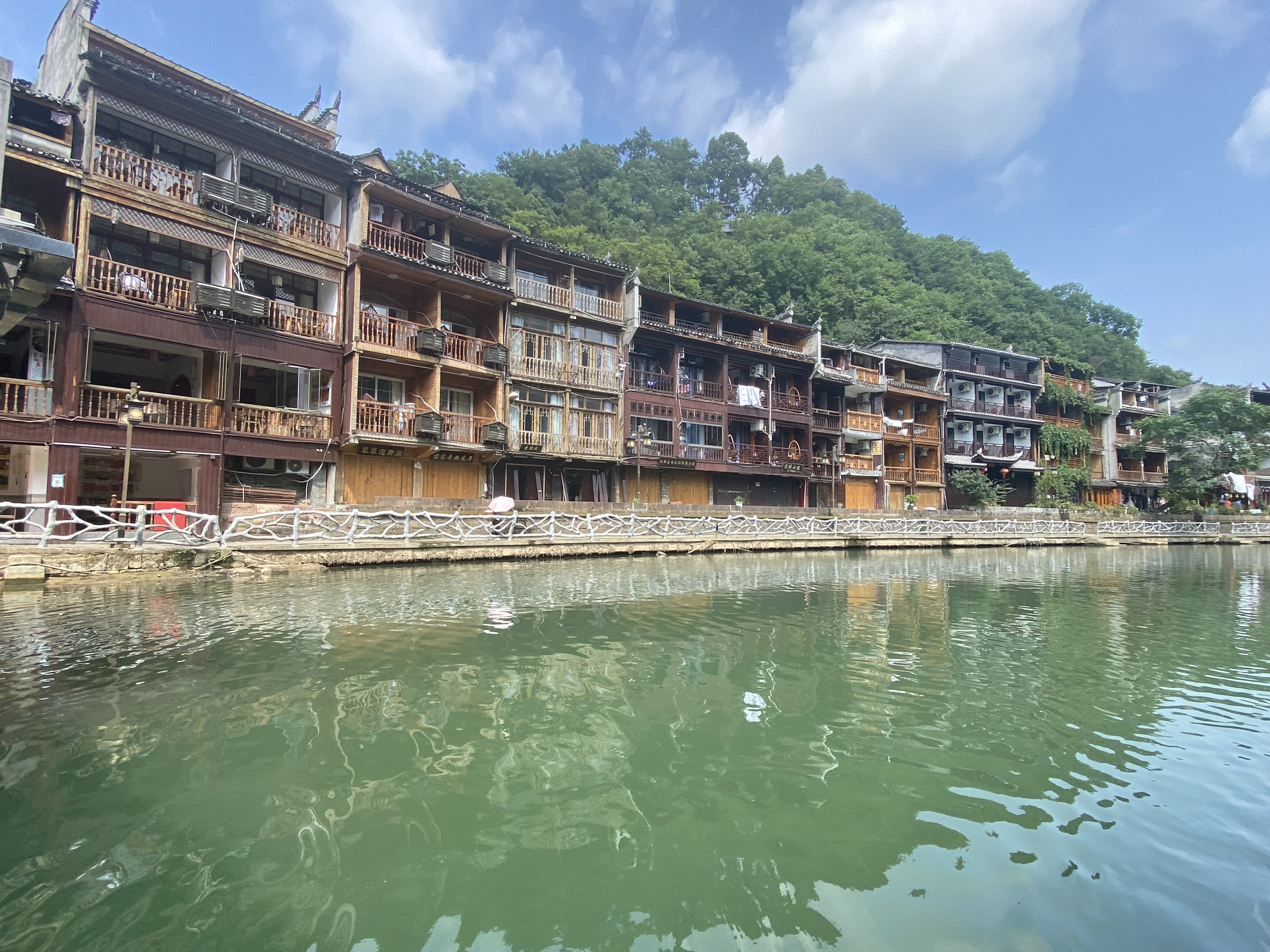 Ici, le peuplement n’est plus majoritairement « Han » (l’ethnie majoritaire en Chine à 92%) mais « Miao » (le peuple qui a découvert comment faire pousser du riz, ils en tirent leur nom, « Miao », 苗 signifiant « petite pousse ») et « Tujia » (土家族, peuple de la terre, en traduction libre). C’est d’ailleurs ici que se trouve l’épicentre de la révolte du peuple Miao contre les Mandchous au milieu du XIXe siècle, violemment réprimée (toute l’histoire de la Chine réside ici, comment absorber les minorités dans cet ensemble immense équivalent à l’Europe, vous connaissez les dernières vicissitudes avec ce qui se passe dans le Xinjiang). Ainsi, de la vie de ces ethnies ici, il ne reste rien de distinctif que j’ai pu apercevoir, à part le folklore -mais je suis restée bien peu de temps ; nous verrons bien des boutiques nous proposer leurs costumes, mais sans vraiment d’authenticité.
