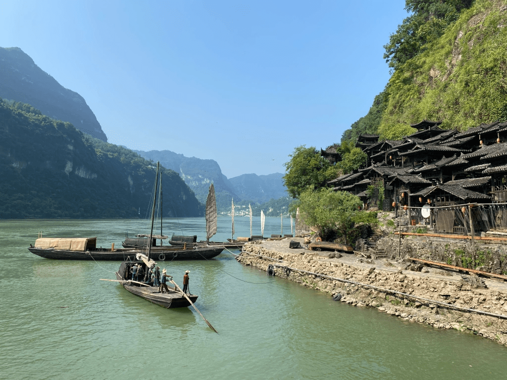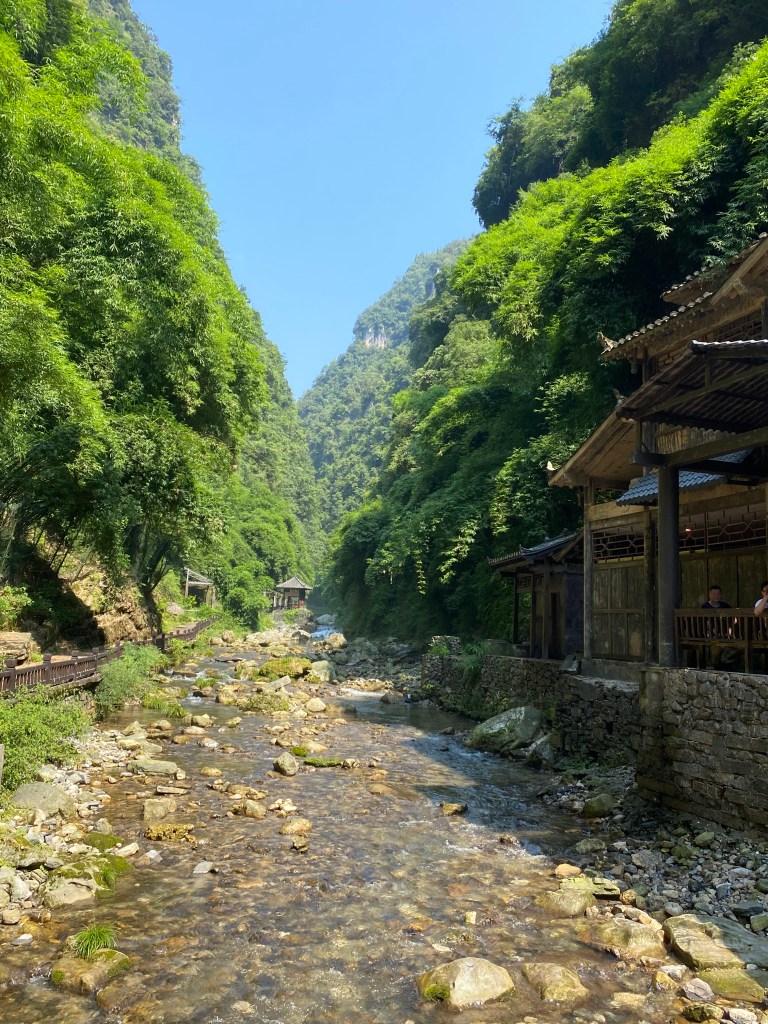 Après un petit déjeuner pris tôt le matin (il est servi de 7 h à 8 h), composé d’une soupe de nouilles et de légumes pimentés, j’ai suivi le flot d’un groupe de Chinois, celui auquel on m’avait affectée au sortir du bateau, conduit par une guide nantie d’un bâton télescopique avec un petit ours rose (j’ai compris plus tard que c’était indispensable pour la reconnaître dans le flux de touristes qui avaient envahi le lieu dès potron-minet), j’ai rejoint cet affluent du grand fleuve, où j’ai découvert la minorité Tujia. Forte de huit millions d’habitants, cette ethnie tente, comme toutes les autres de faire vivre ses rites, rituels, langue et habitudes alimentaires, bref, tout ce qui fait la différence de sa culture et de son essence.