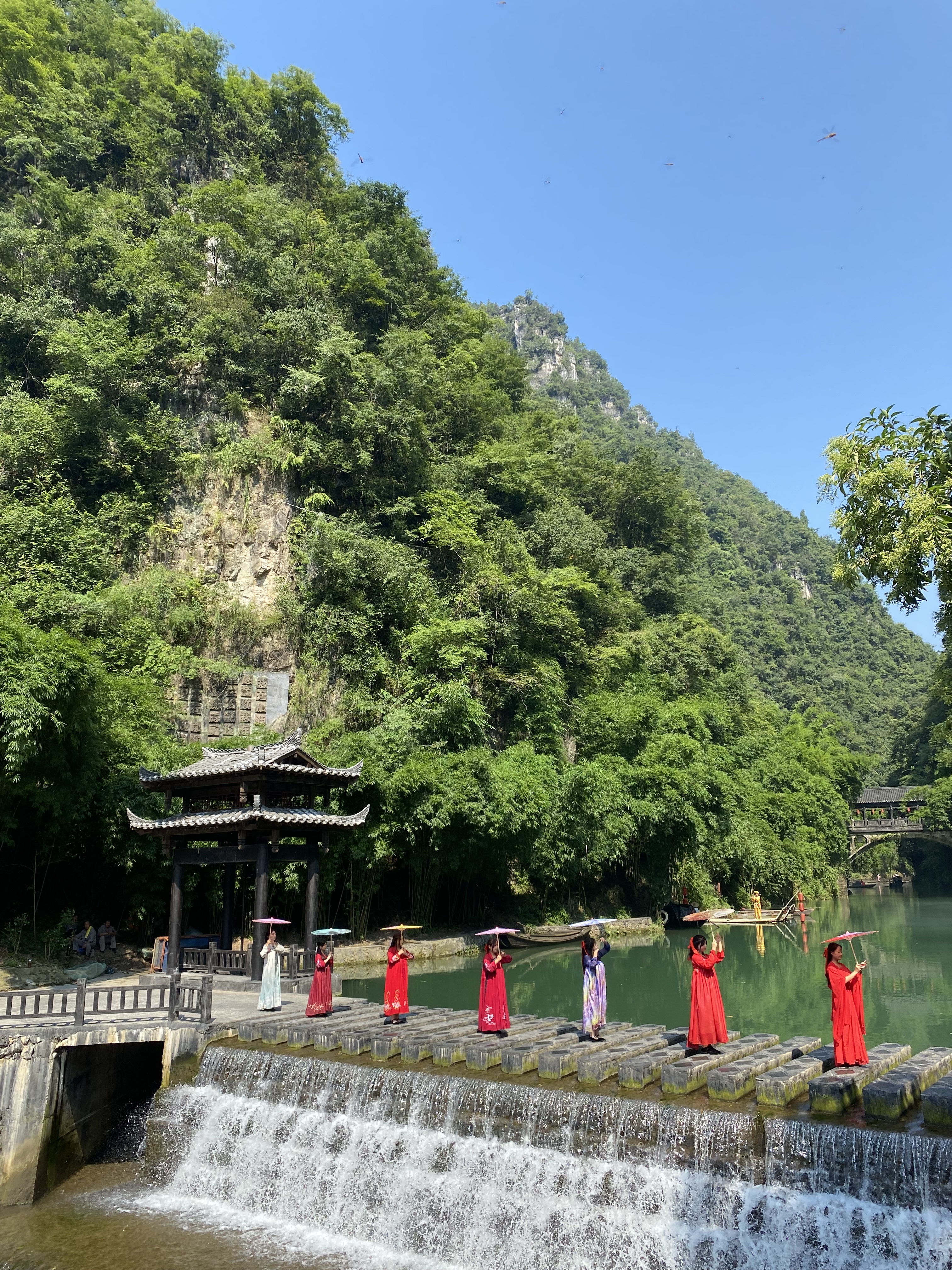 Après une promenade sur un chemin bien balisé le long de l’affluent, nous atteignons le climax de notre aventure en pays Tujia, une pièce de théâtre où il est question de fille à marier. Les smartphones n’en peuvent plus de filmer ou de photographier. Je pense à ces pauvres comédiens, obligés de mettre en scène leur culture plusieurs fois par jour devant des touristes qui ne pensent qu’à prendre des clichés pour montrer qu’ils étaient là…