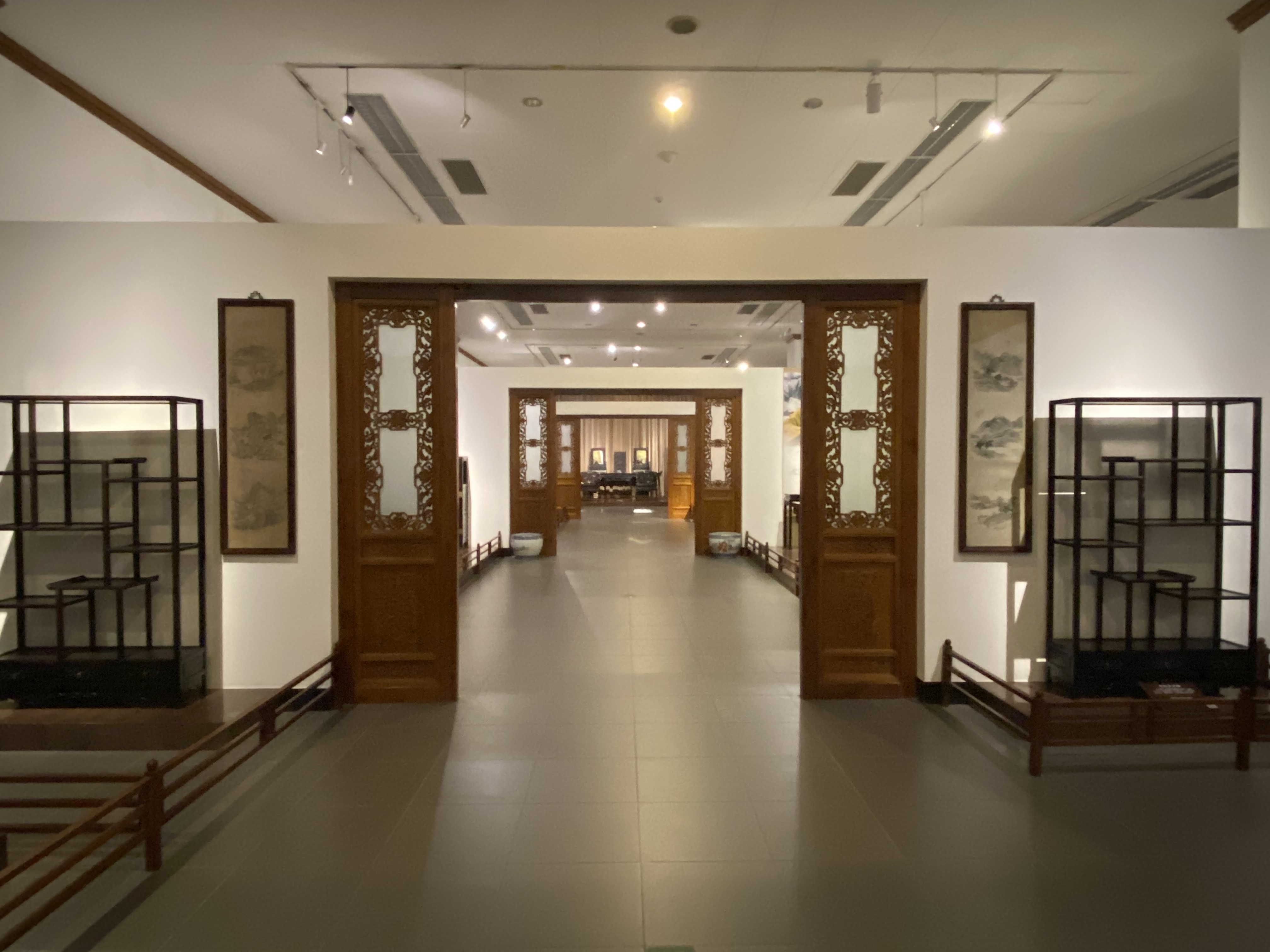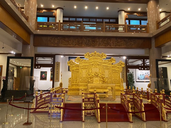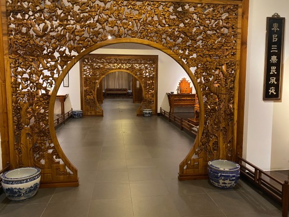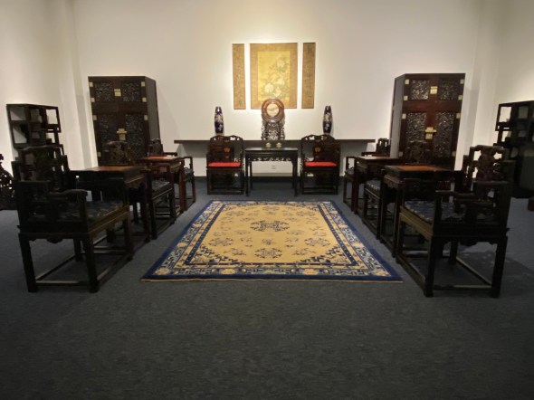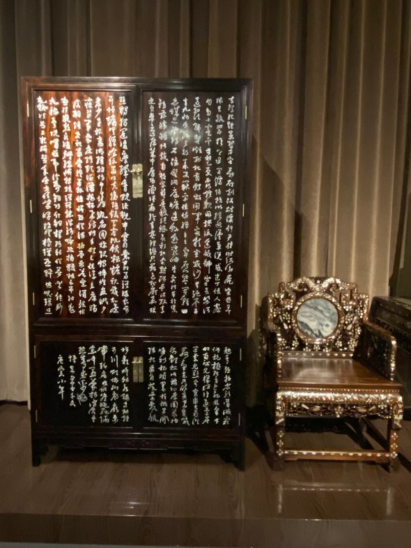 Et puis, pour mieux nous immerger dans ces intérieurs aisés des temps passés, je croise la reconstitution d’un salon de réception de l’époque Qing, toute une symétrie où l’harmonie est pensée jusqu’aux plus petits détails. Nous imaginons une famille aisée recevant des officiels ici, en leur offrant le thé, avant de les conduire jusqu’à la salle de banquet. Ou ce serait aussi le lieu d’une demande en mariage formelle unissant deux grandes familles. Qui sait ?