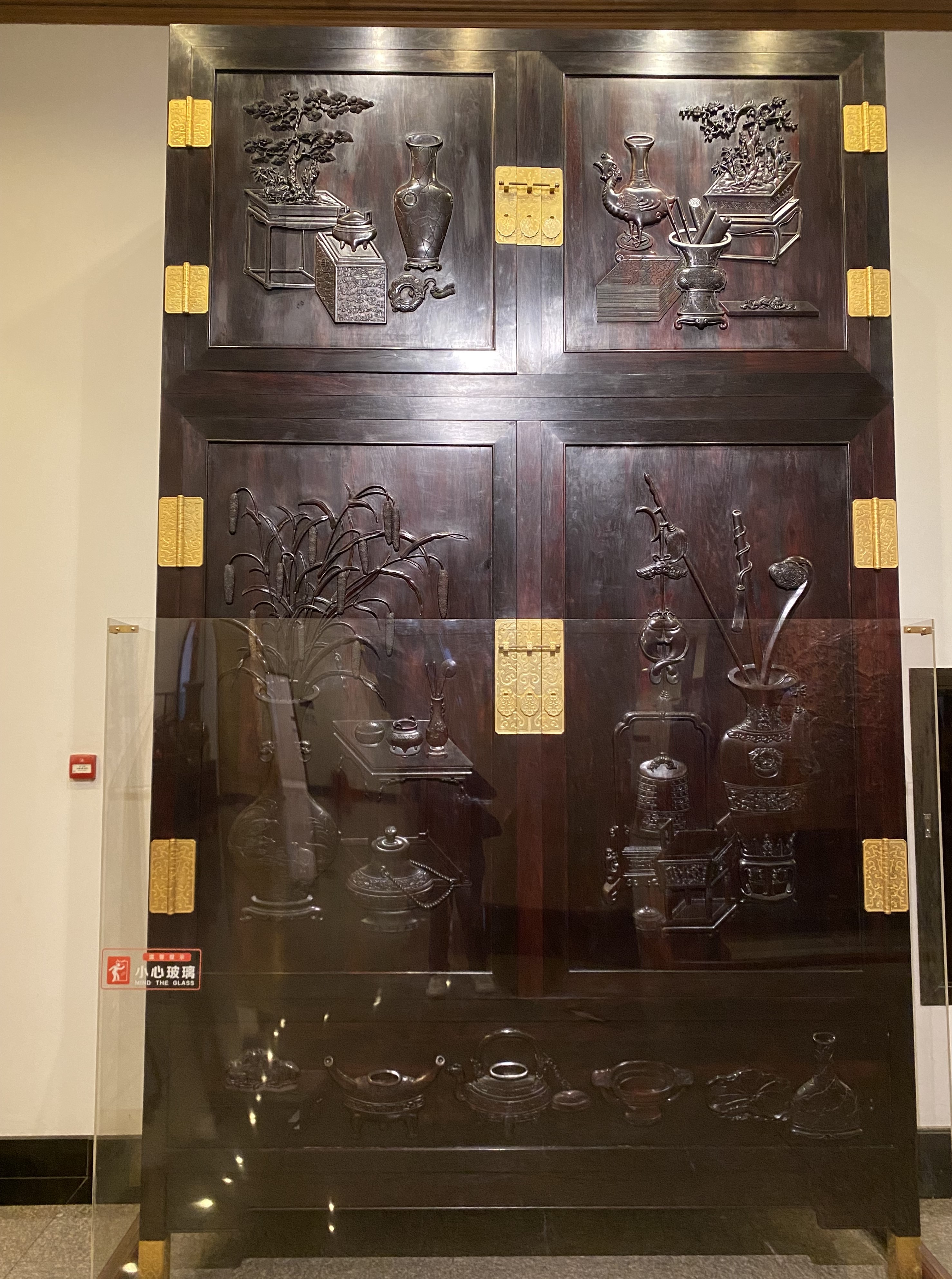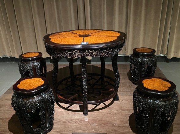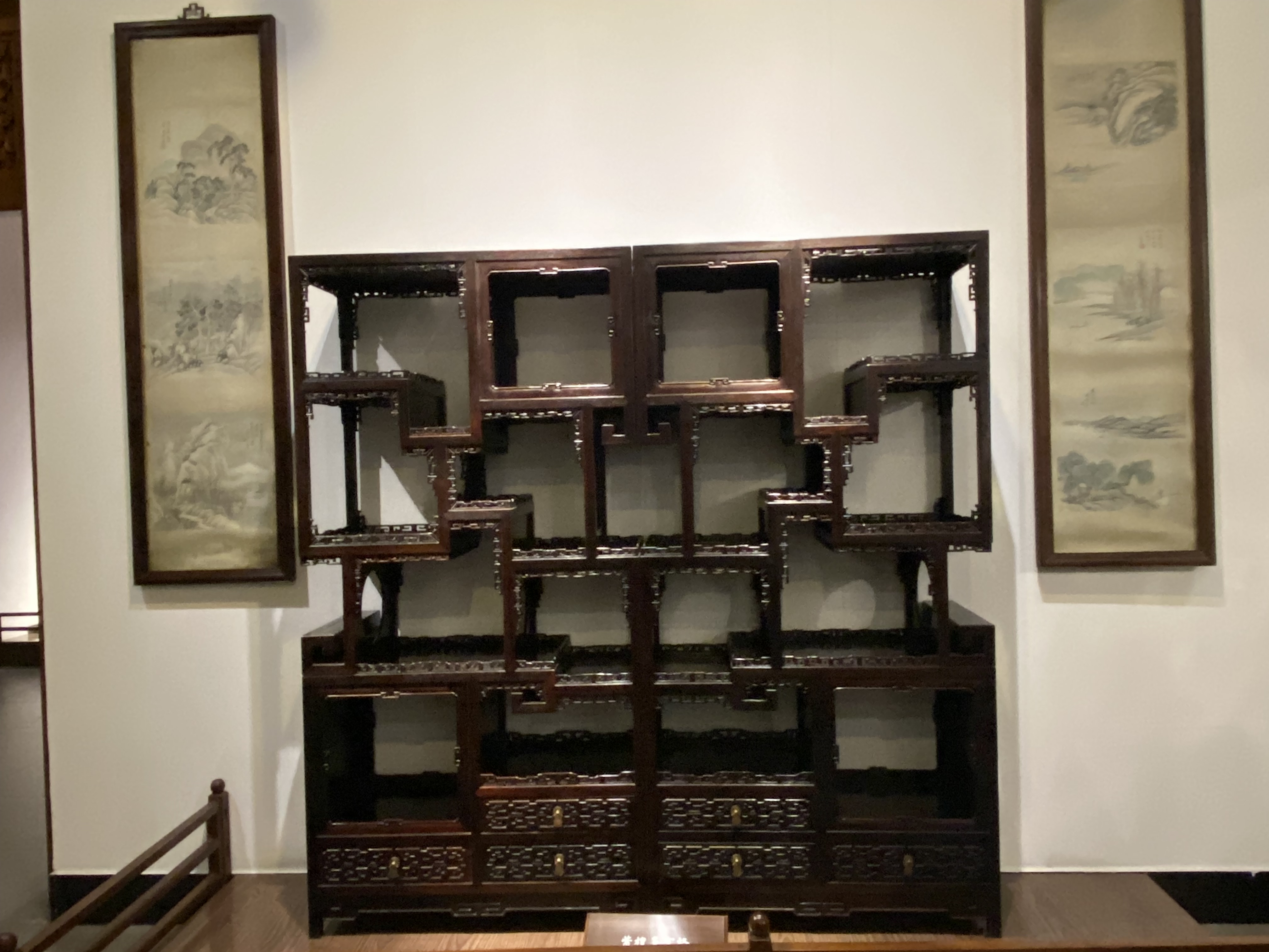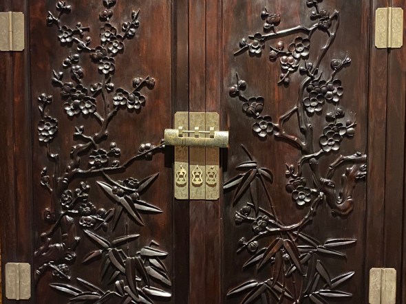 La Chine est reconnue pour son artisanat de bois, les savoir-faire dans l’architecture pour les structures à ossature de bois ont été inscrits en 2009 sur la liste représentative du patrimoine culturel immatériel de l’UNESCO. Dès la dynastie des Tang, à partir du VIIe siècle, les meubles en bois ont connu un premier développement, qui s’est accéléré ensuite. Ce que j’ai vu ici relève plutôt des dynasties ultérieures, principalement Ming et Qing, je suppose (l’absence de cartons déjà mentionnée m’incite à la prudence).