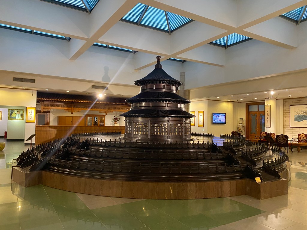 Ou le Temple du Ciel, autre monument célèbre de Pékin, en une maquette qui occupe l’intégralité du dernier étage.