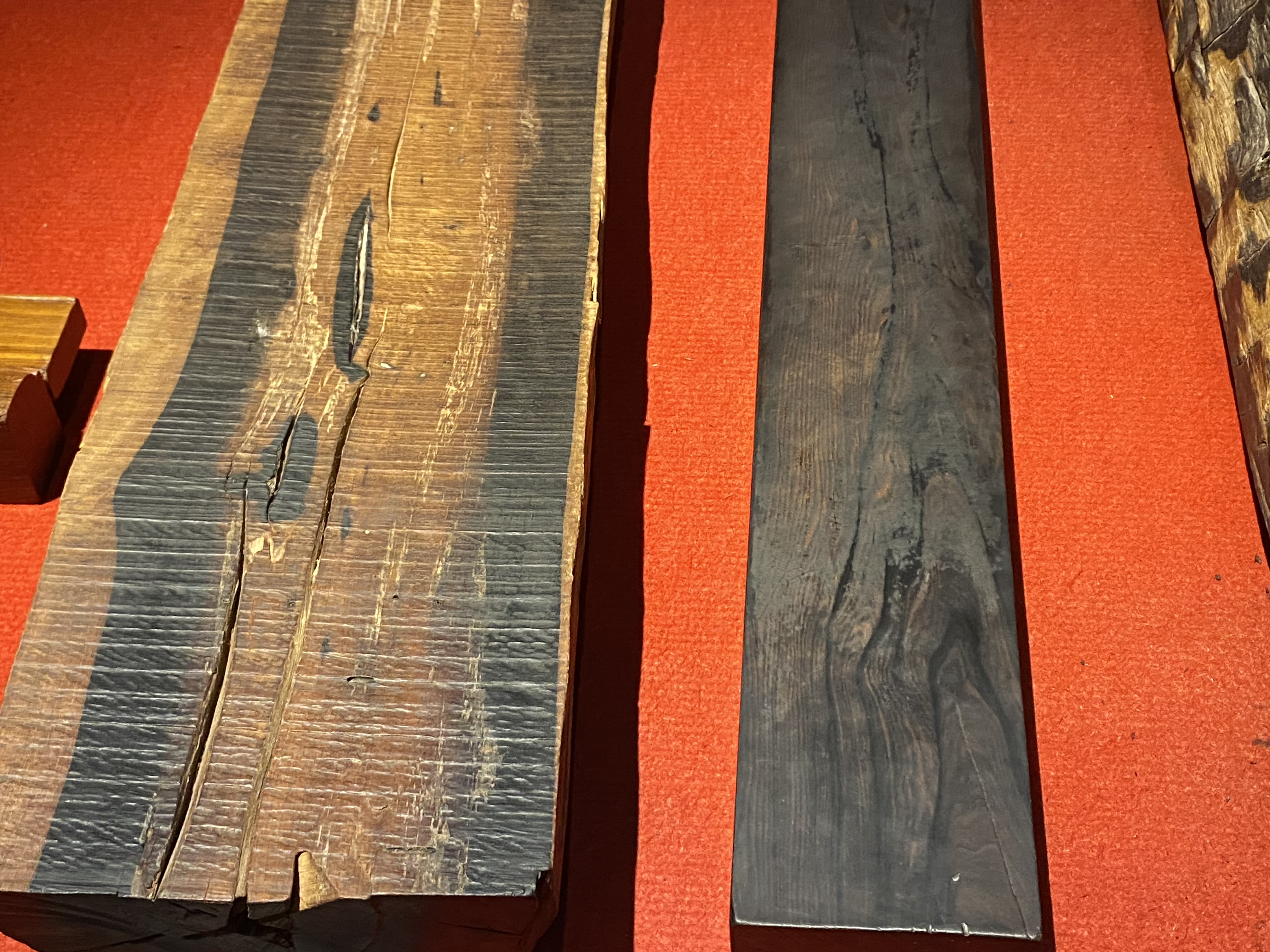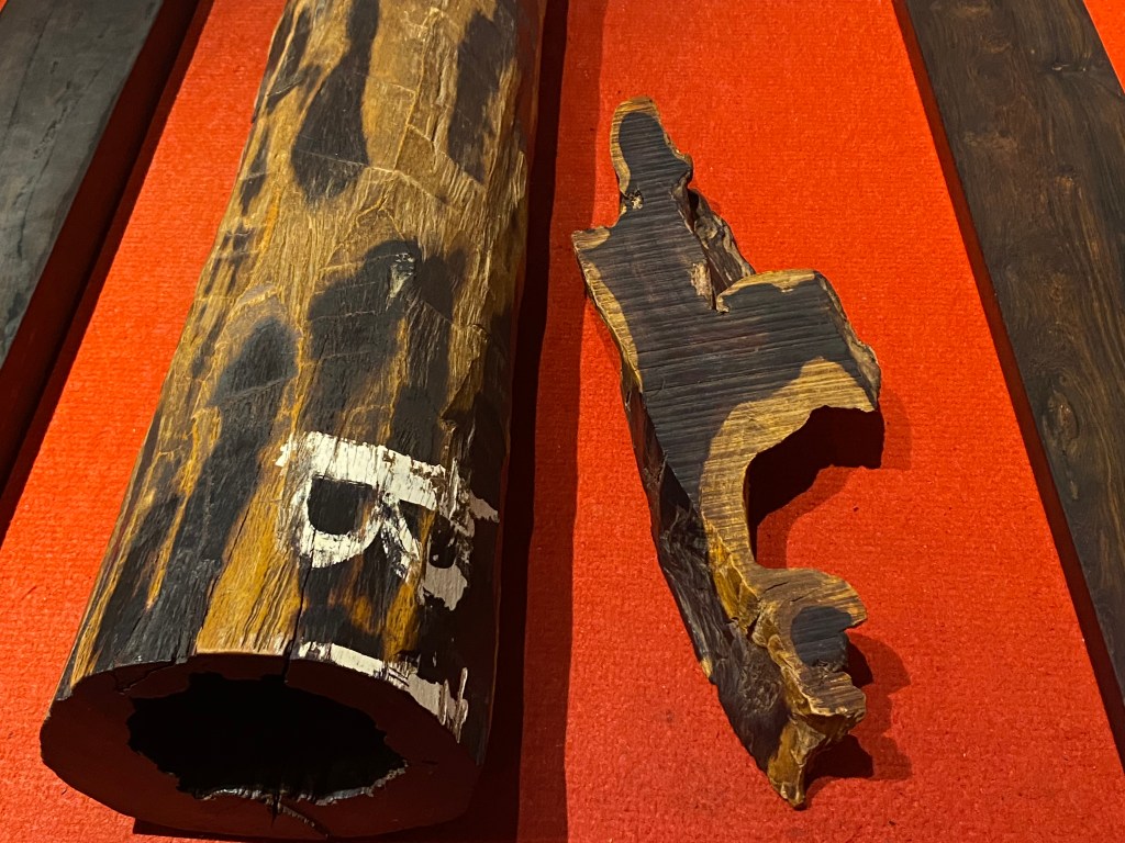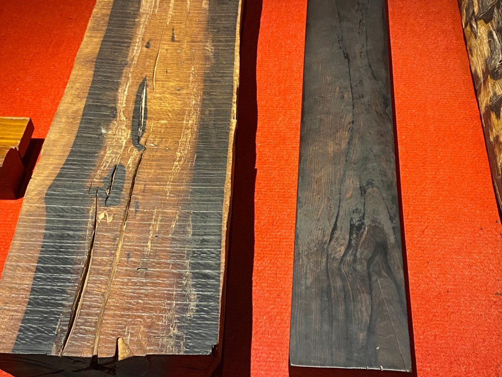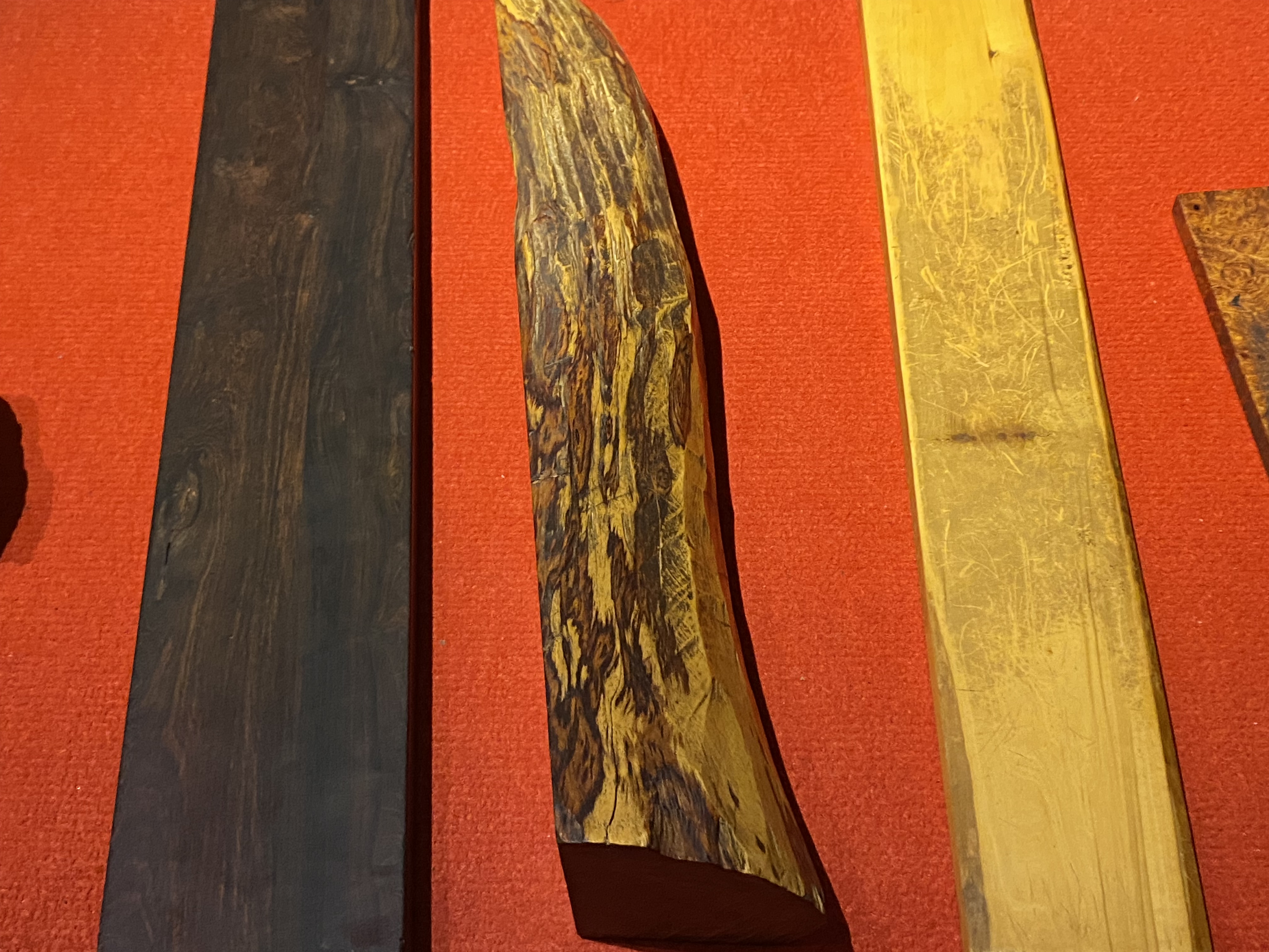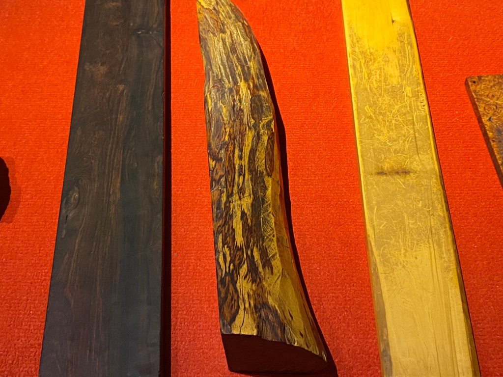 Au dernier étage, vous pouvez voir des échantillons des bois précieux qui ont servi à construire les meubles que nous allons voir. Je vous laisse réviser, comme je l’ai fait !