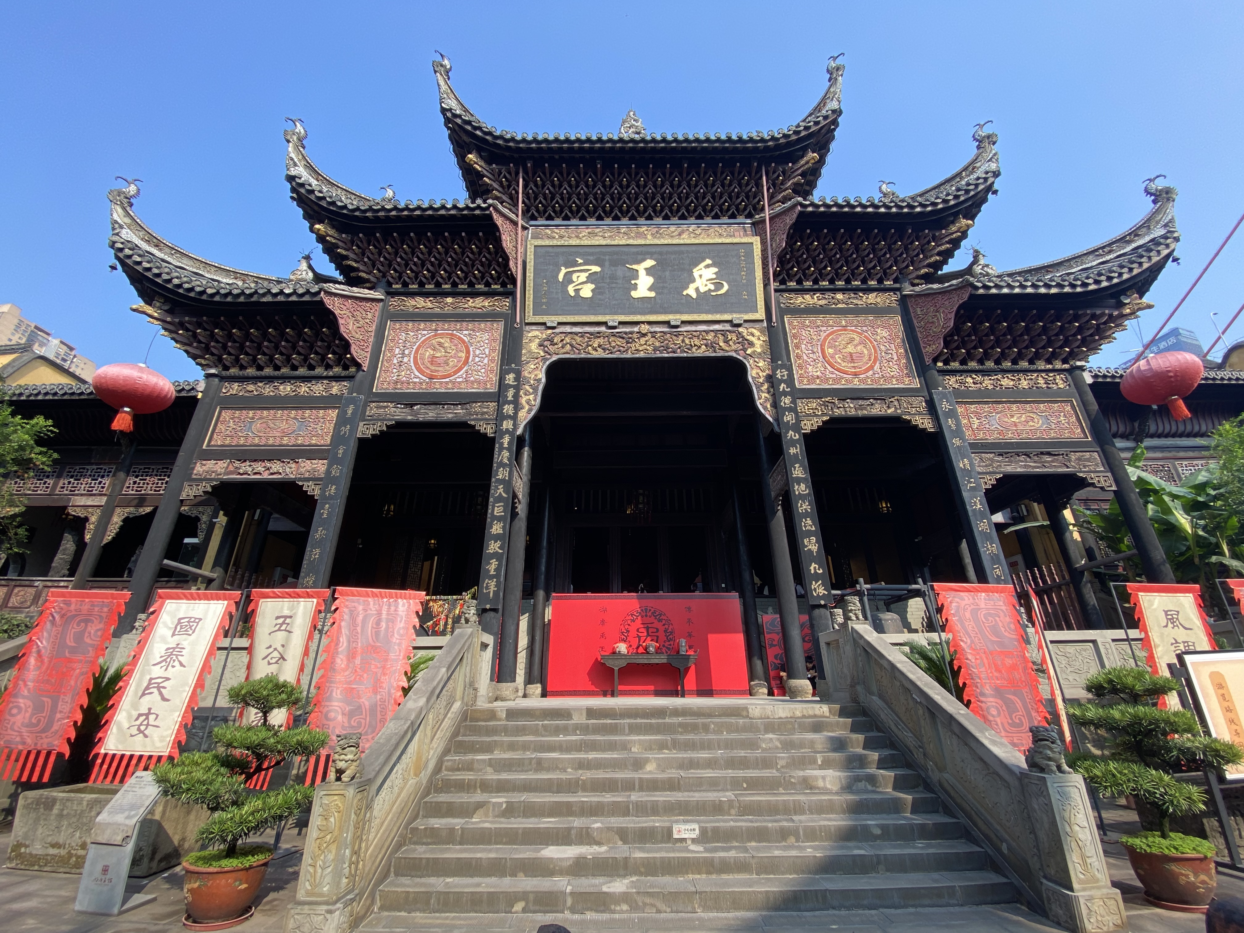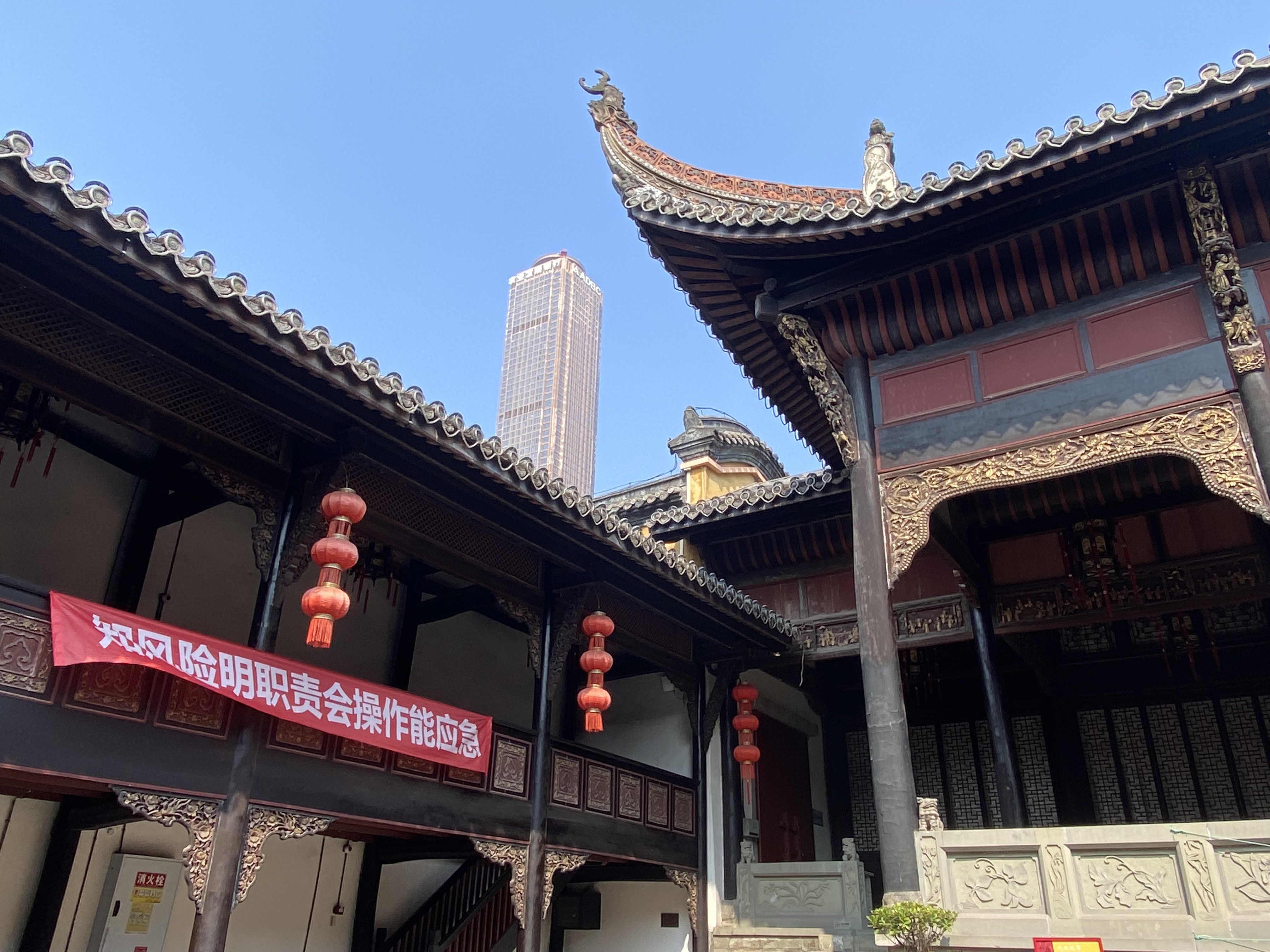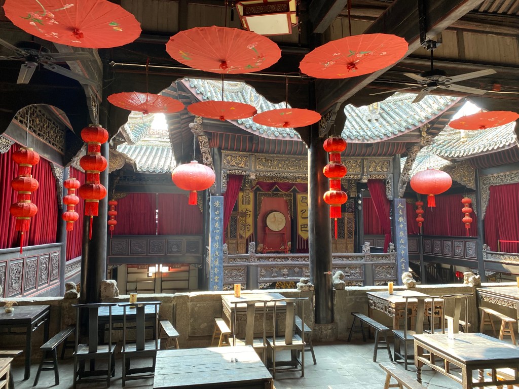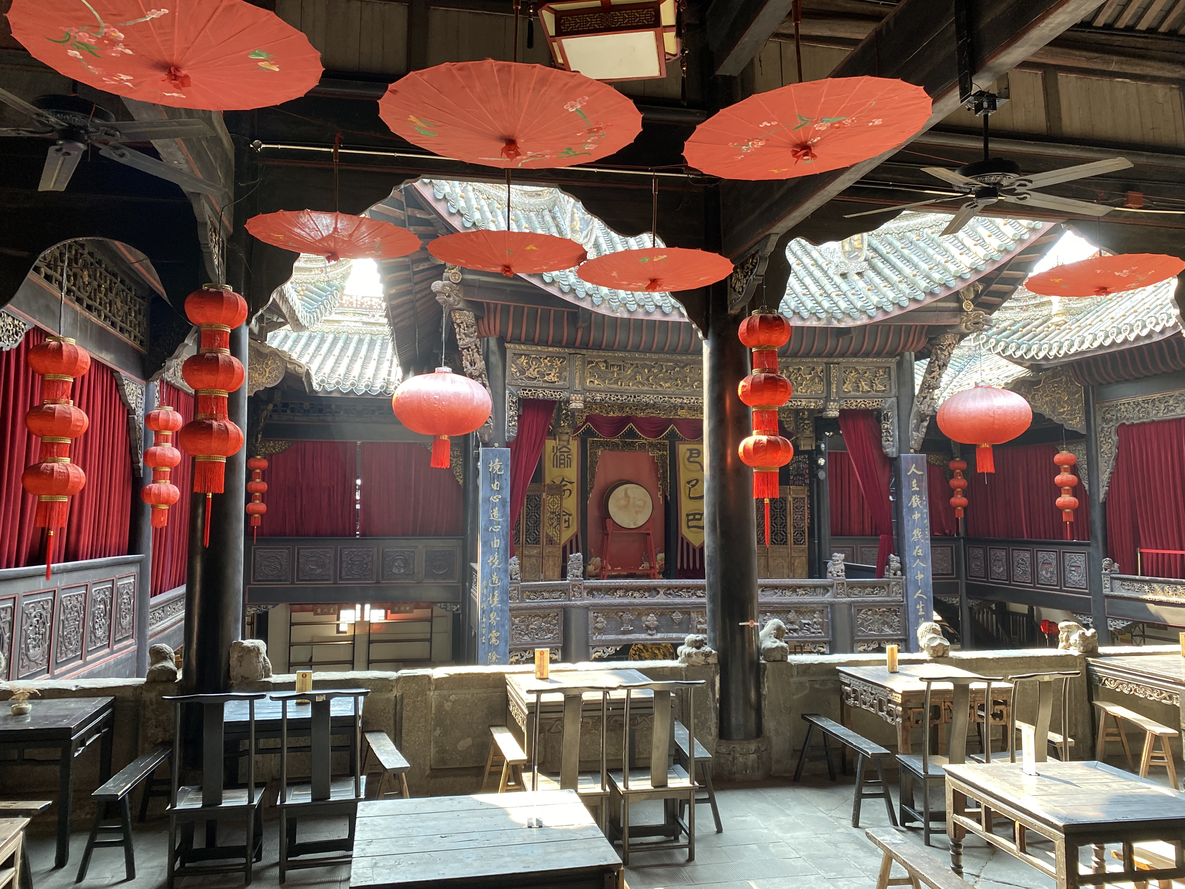 Un autre point d’intérêt est le Huguanghuiguan (湖广会馆), un ensemble ancien créé en 1759 fait de cours, de temples et également d’une bien belle salle de spectacles qui reste encore active. Le nom vient des provinces du Hunan (Hu), du Guangdong (Guang), du Hubei (Hui) et du Guangxi (Guang), qui, après la peste qui a décimé la population au XVIIe siècle, ont envoyé de nouveaux habitants pour repeupler l’endroit. Une solidarité peut-être forcée, peut-être pas, la ville étant un centre d’attraction économique pour ces provinces plus pauvres à l’époque.