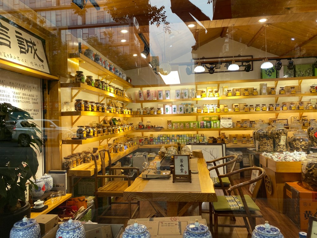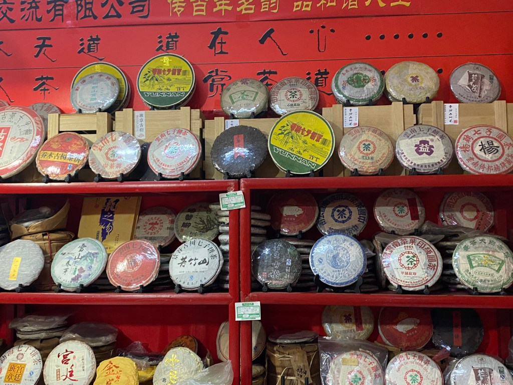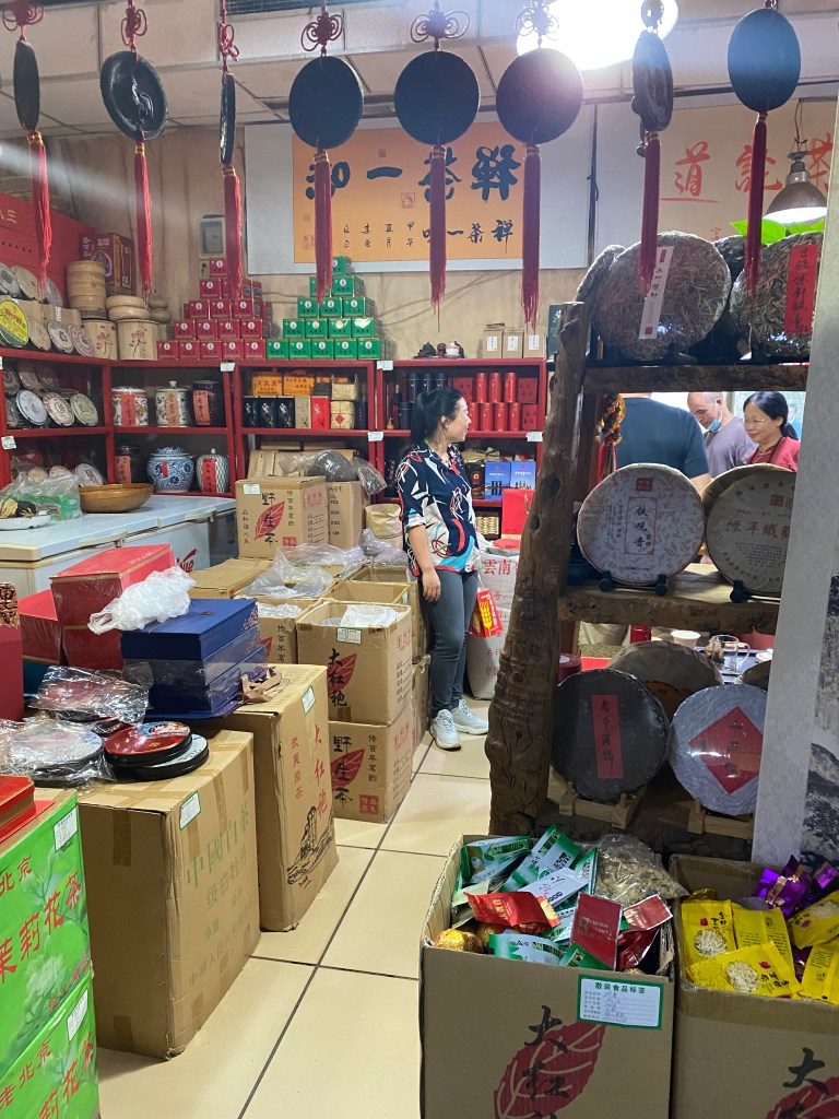 Le long de la rue, elles défilent par dizaines, ponctuées de centres commerciaux uniquement dédiés au thé. C’est un quartier monothématique qui est à ce produit ce que Gaobeidian, dans l’est de Pékin, est aux meubles. Nous imaginons bien que dans cette ville immense, il ne faut pas perdre le futur consommateur dans des trajets innombrables, le laisser zigzaguer d’un marchand à l’autre d’un bout à l’autre de l’espace urbain, ce regroupement est finalement assez rationnel, même s’il donne un peu le tournis à la longue.