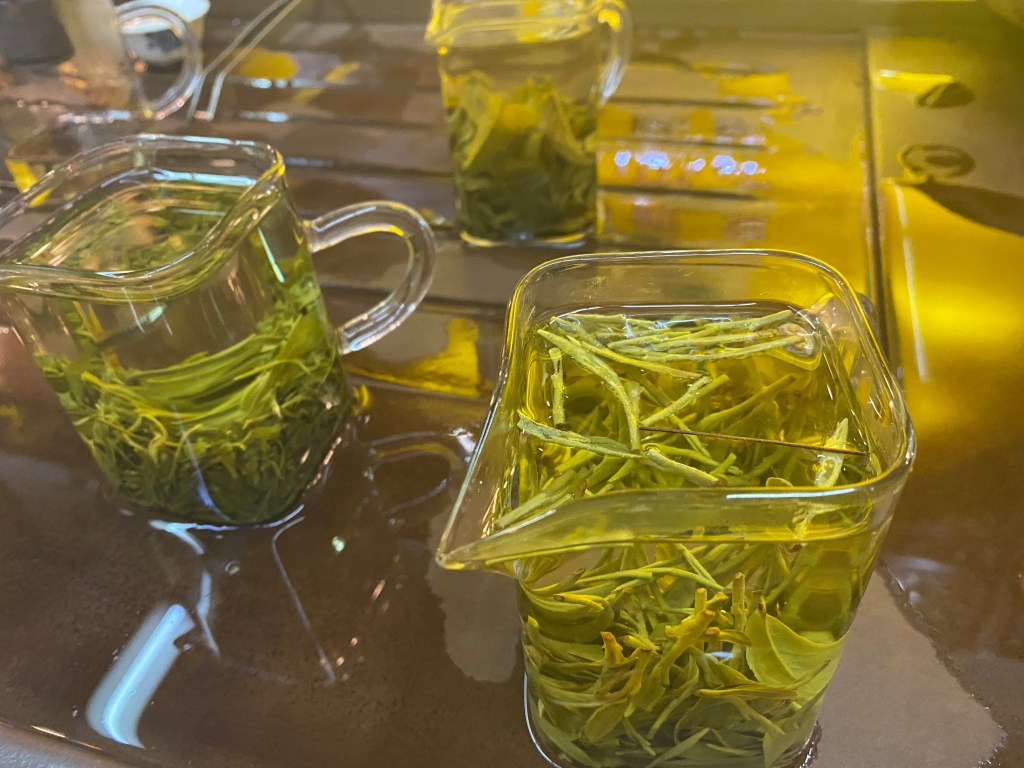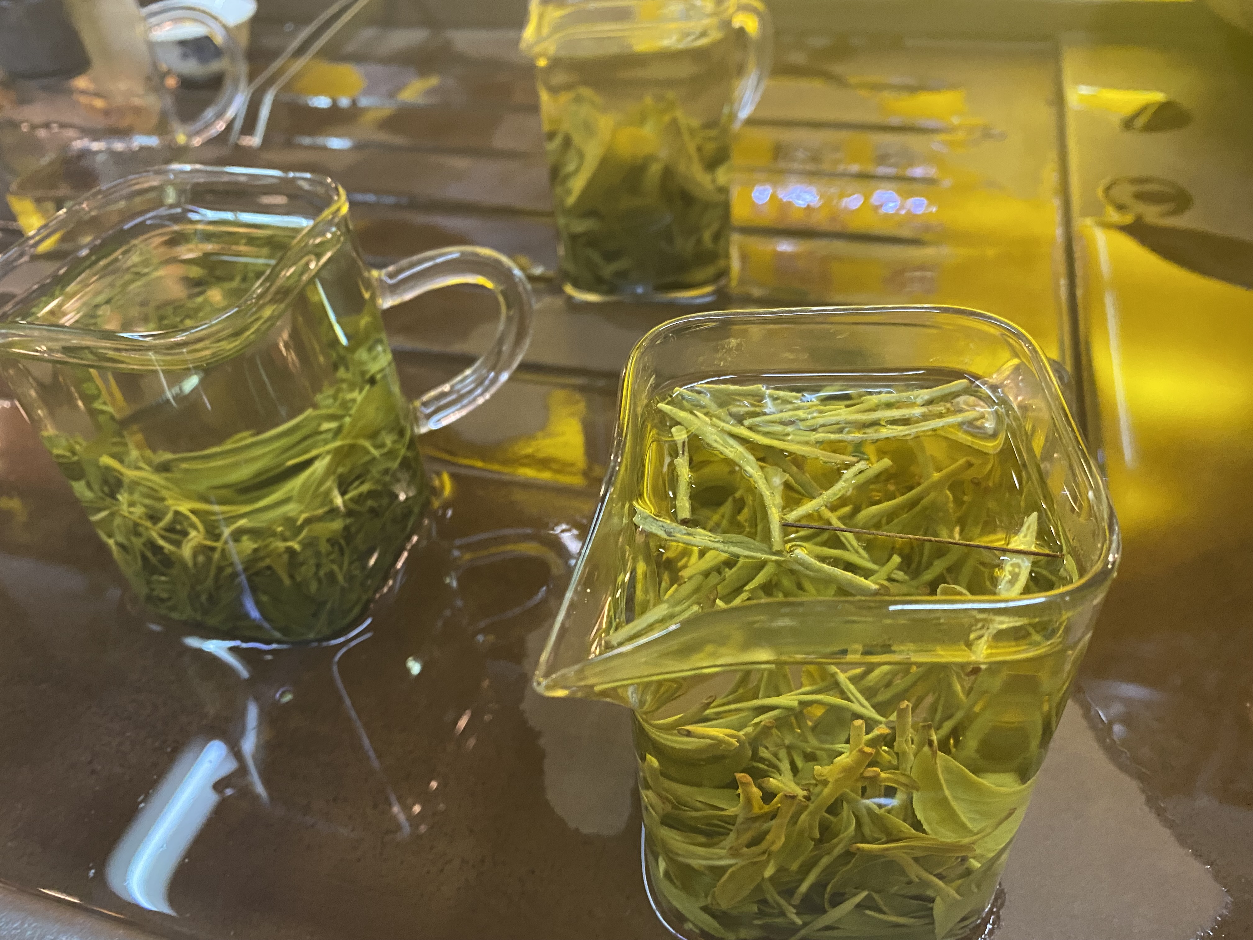 Je vais vous entraîner dans d’autres découvertes que j’ai faites ce jour-là. Par exemple, saviez-vous qu’il existe six catégories de thé en Chine ? D’abord, le plus connu, le thé rouge (红茶 hong cha), qui est chez nous le thé noir. Ensuite le thé vert (绿茶 lu cha), le thé blanc (白茶 bai cha), les mêmes que sous nos contrées. Puis un thé assez rare même ici, le thé jaune (黄茶 huang cha), sans oublier le thé noir (黑茶 hei cha) qui comprend notamment le Pu’er (普洱茶, du nom d’un lac de la province du Yunnan) et enfin le thé Oolong (wulong en chinois, 乌龙, le thé du dragon noir), dit aussi chez nous le thé bleu. Tout un arc-en-ciel enveloppe cette boisson millénaire.