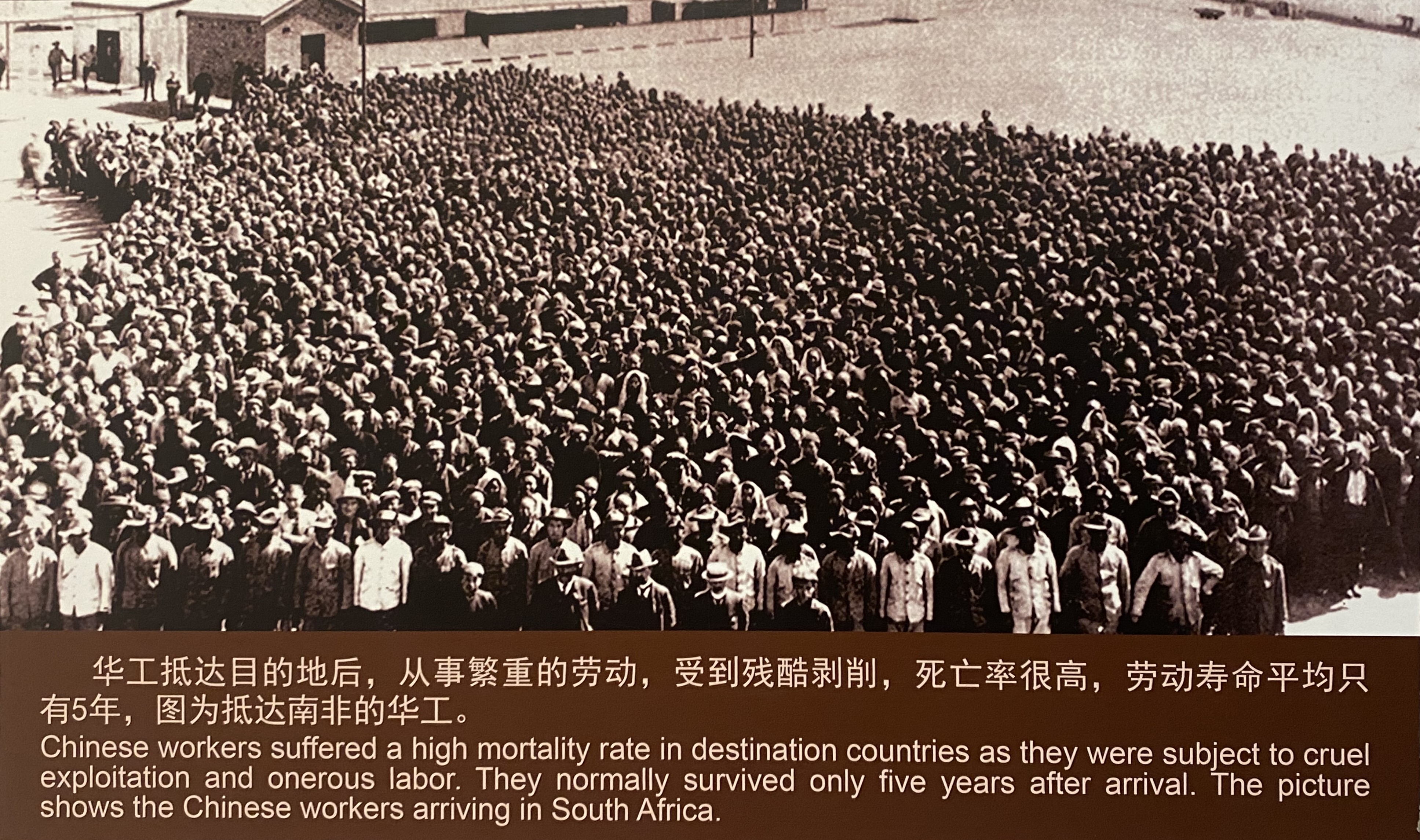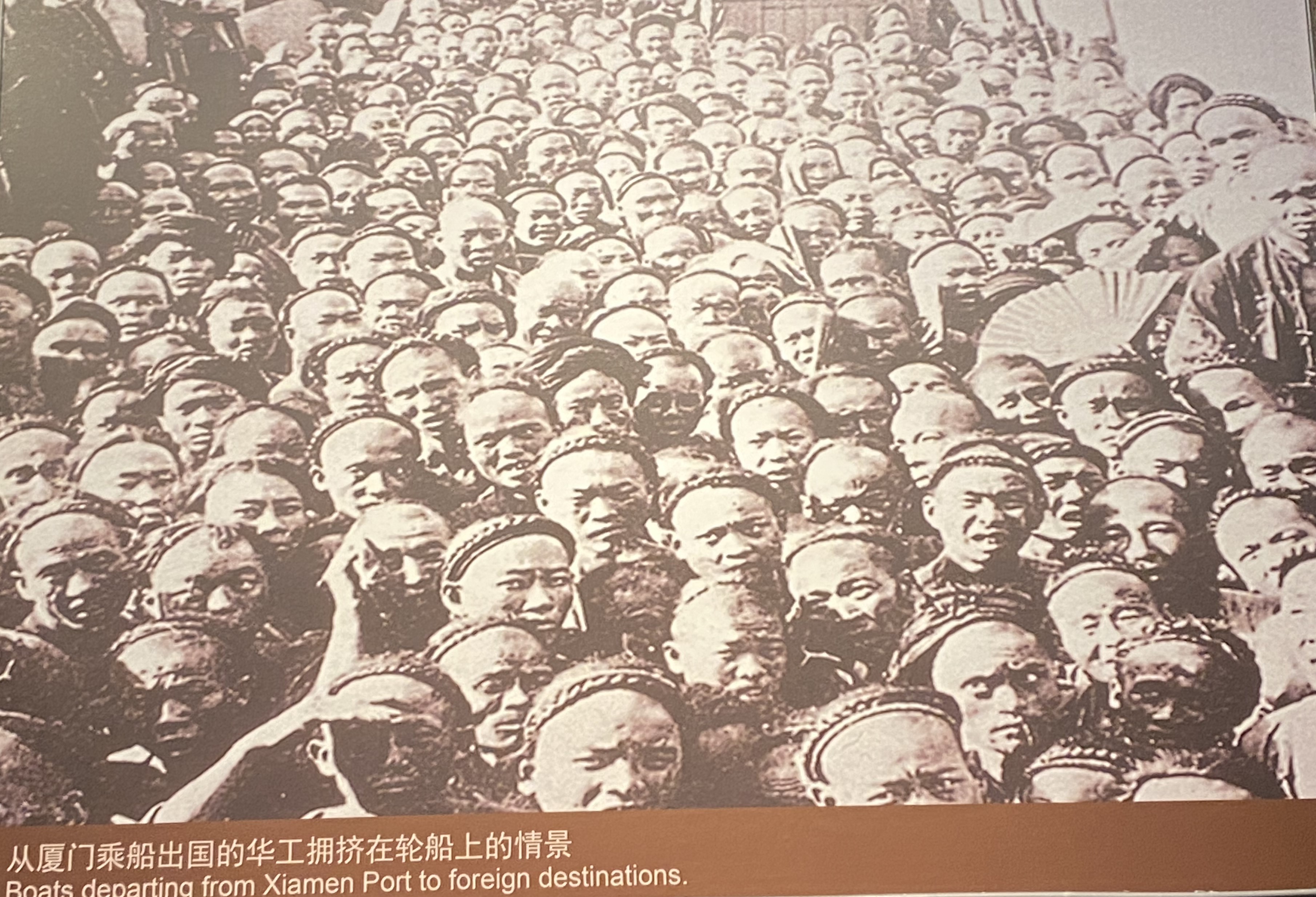 Les ports principaux de départ étaient ceux de Xiamen et de Macau, au climax ce sont par exemple jusqu’à 80 000 personnes (dont plus de 5000 enfants) qui ont quitté Xiamen pour Singapour en 1902. Au total, les estimations du Musée avancent le chiffre de 7 millions de travailleurs partis entre 1800 et 1925 pour effectuer des travaux pénibles, principalement dans les colonies des pays européens. Ils ont ainsi accompagné la construction des chemins de fer aux Etats-Unis dans leur conquête de l’ouest et de l’or, la plantation des caoutchouc en Malaisie, la plantation de canne à sucre à Cuba et bien d’autres défrichements de ces pays nouveaux sous la férule des pays européens. Il est également question des agences de recrutement, ouvertes par les Hollandais, les Portugais et les Espagnols à Macau mais aussi dans des ports de Chine, qui font finalement presque de la traite d’êtres humains. C’est très intéressant de voir ici ces pays européens présentés comme des prédateurs (ce qu’ils ont peut-être/sûrement été).