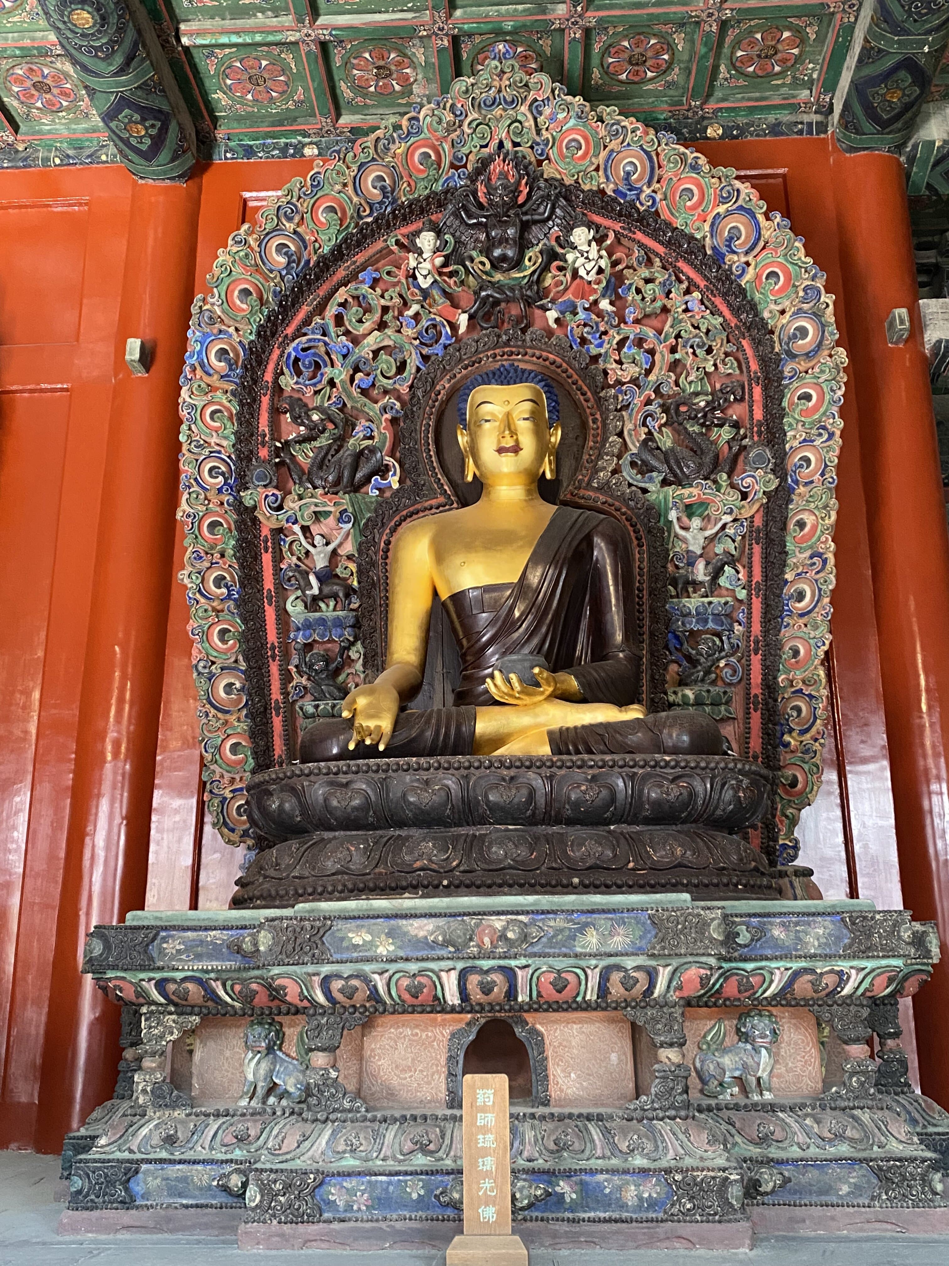 C’est un temple qui a longtemps été fermé, rénovations ou Covid-19, ou les deux, je ne sais pas. Son nom signifie « Longévité », c’est peut-être son destin, car après avoir été créé au XVIe siècle, il a été victime d’un grave incendie en 1912 et a ensuite servi de caserne sous la Révolution Culturelle (1966-1976), sans avoir apparemment été réhabilité entretemps. Aujourd’hui il renaît de ses cendres, tel le Phénix, pour nous présenter de bien beaux bâtiments et quelques intéressantes collections. Depuis 1979, il a été reconnu par le Gouvernement chinois comme un héritage culturel à préserver.