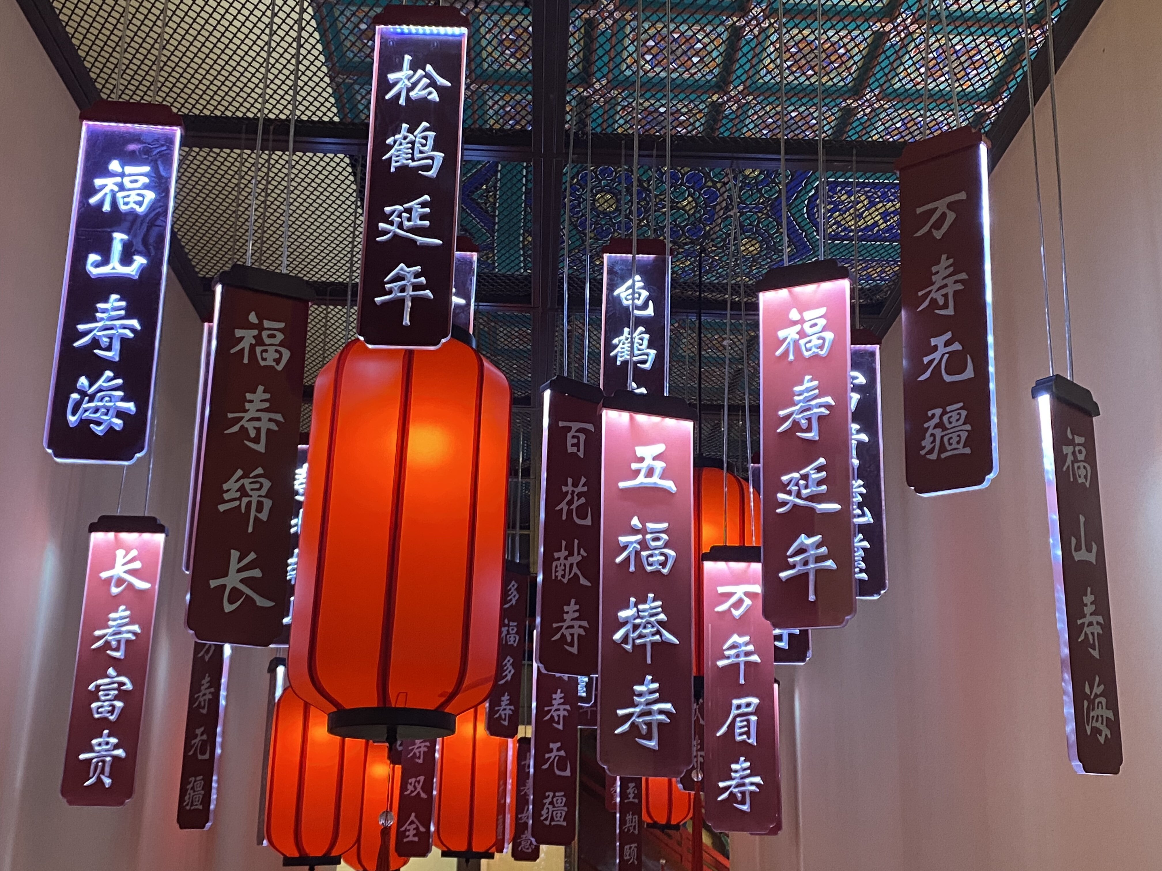 Quelques lanternes ponctuent les lieux de leur harmonie colorée.