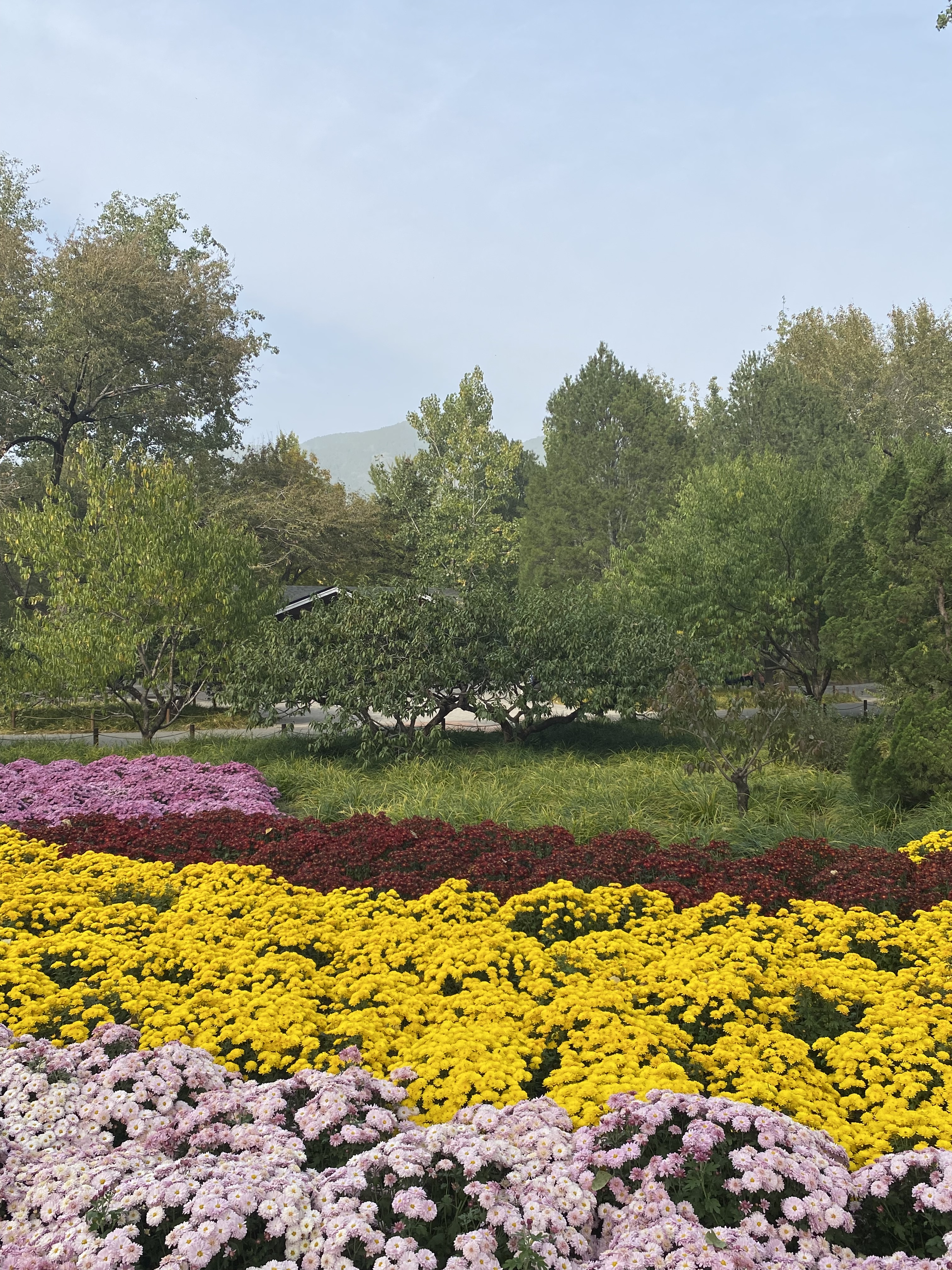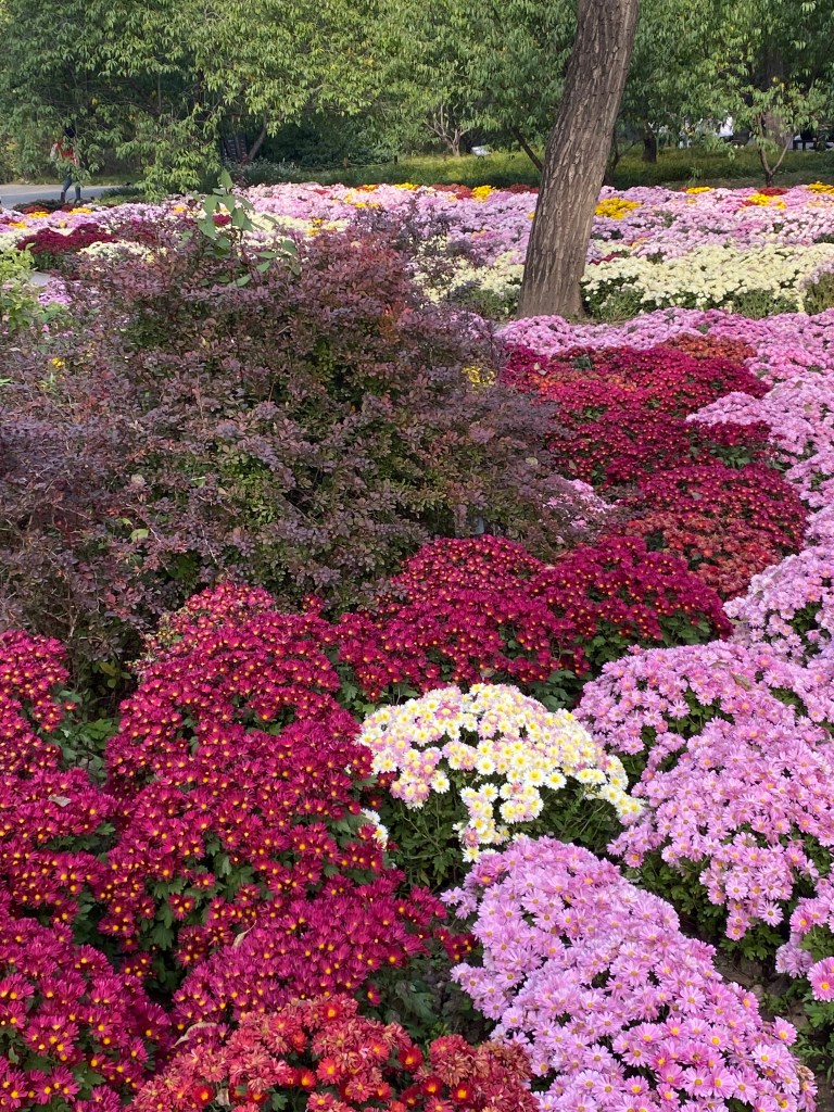 Si je suis venue ici à ce moment précis, c’est pour voir les chrysanthèmes, ces fleurs qui sont associées à la mort pour nous qui honorons nos disparus avec des bouquets de ces fleurs, et qui sont en Chine tout le contraire, elles représentent la longévité, le bonheur et la durabilité (à noter que l’infusion de cette fleur est réputée calmer la fièvre et favoriser la digestion).