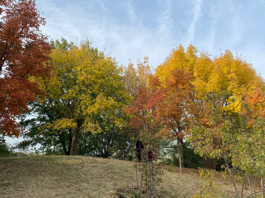 Ils n’ont pas tous fini leur mutation, certains résistent et tentent encore de conserver leur verte couleur du printemps, ce qui nous fait des contrastes bien intéressants.