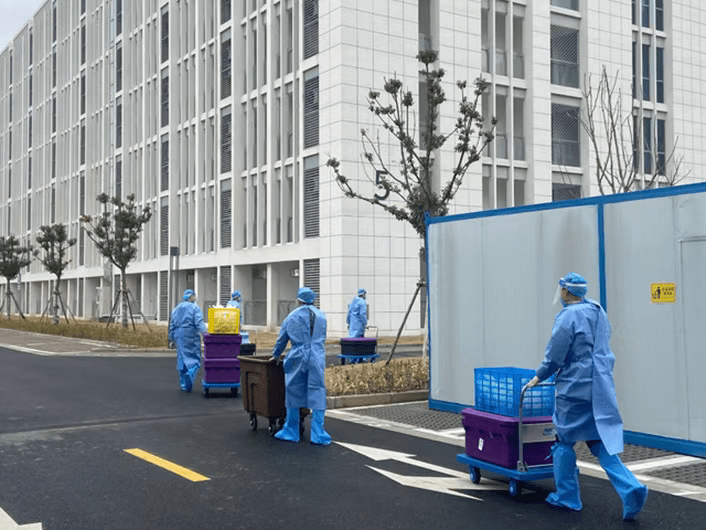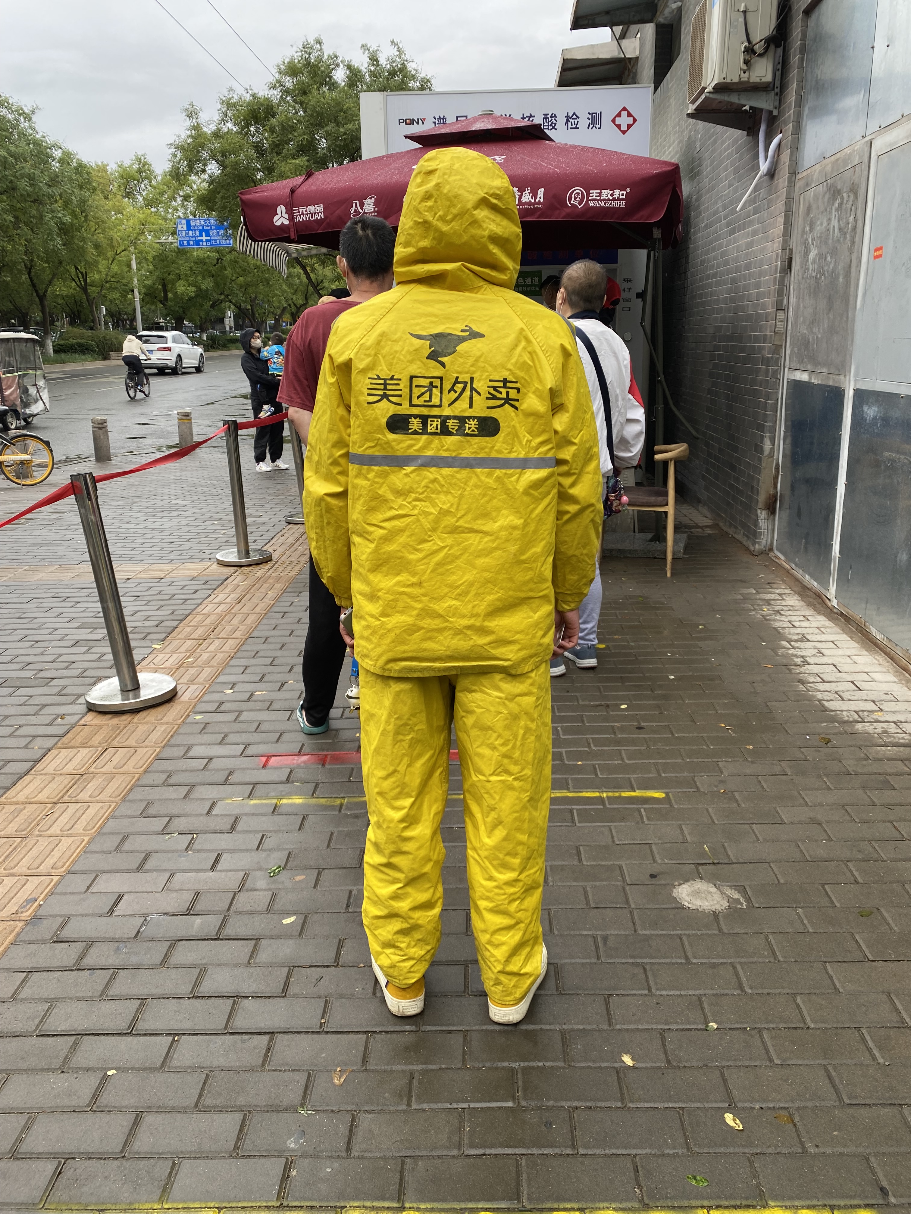 Niveau de sécurité : ⭐⭐⭐⭐fort, un dabai est posté à l’entrée de la queue pour voir si tout le monde porte un masque et scanne le health-kit à l’entrée de la queue