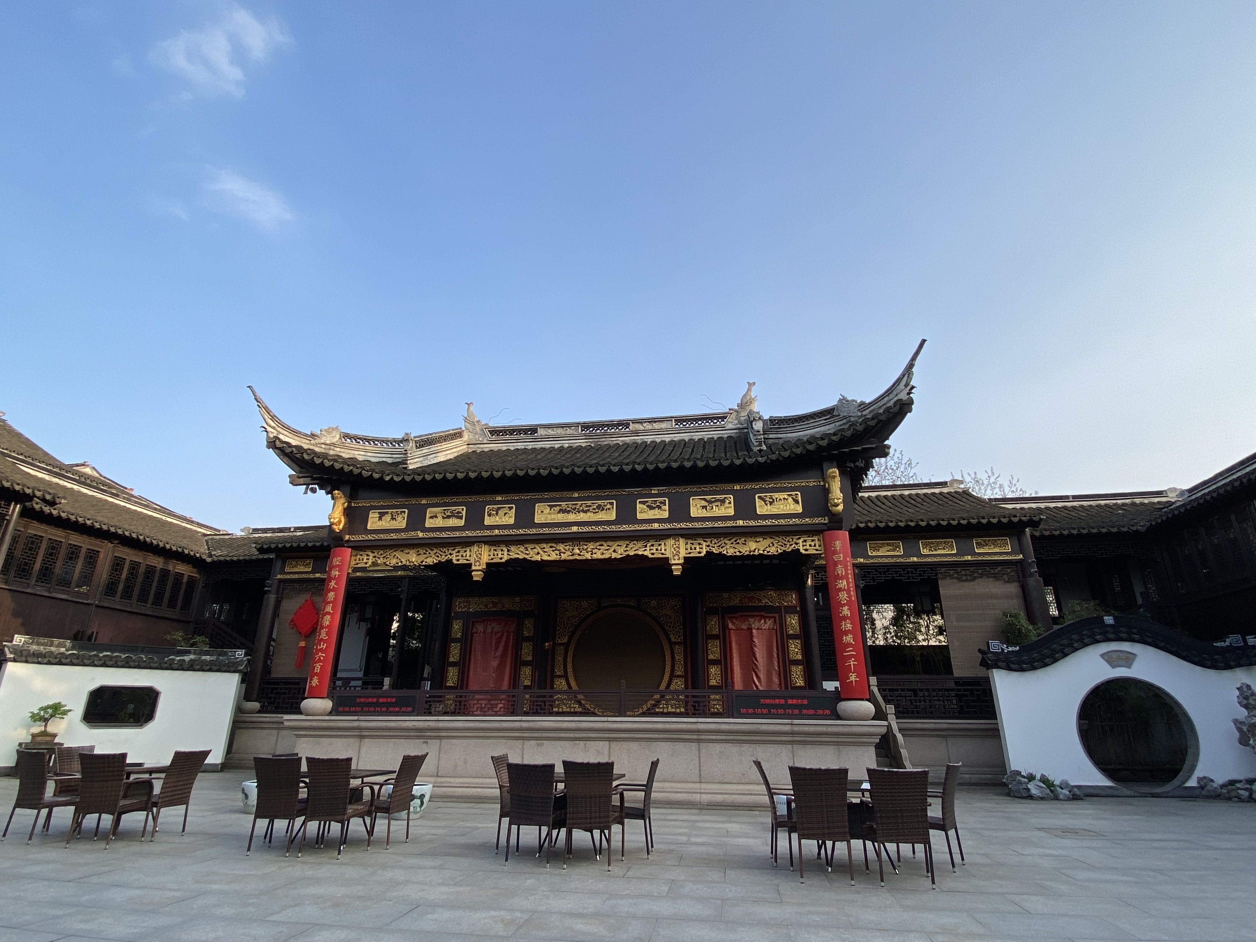 Mon itinéraire m’a également fait croiser le Théâtre, où sont organisés des spectacles de Kunju (opéra local). Dans la paix de ce ciel bleu, j’ai fait une halte pour écouter ces mélopées particulières.