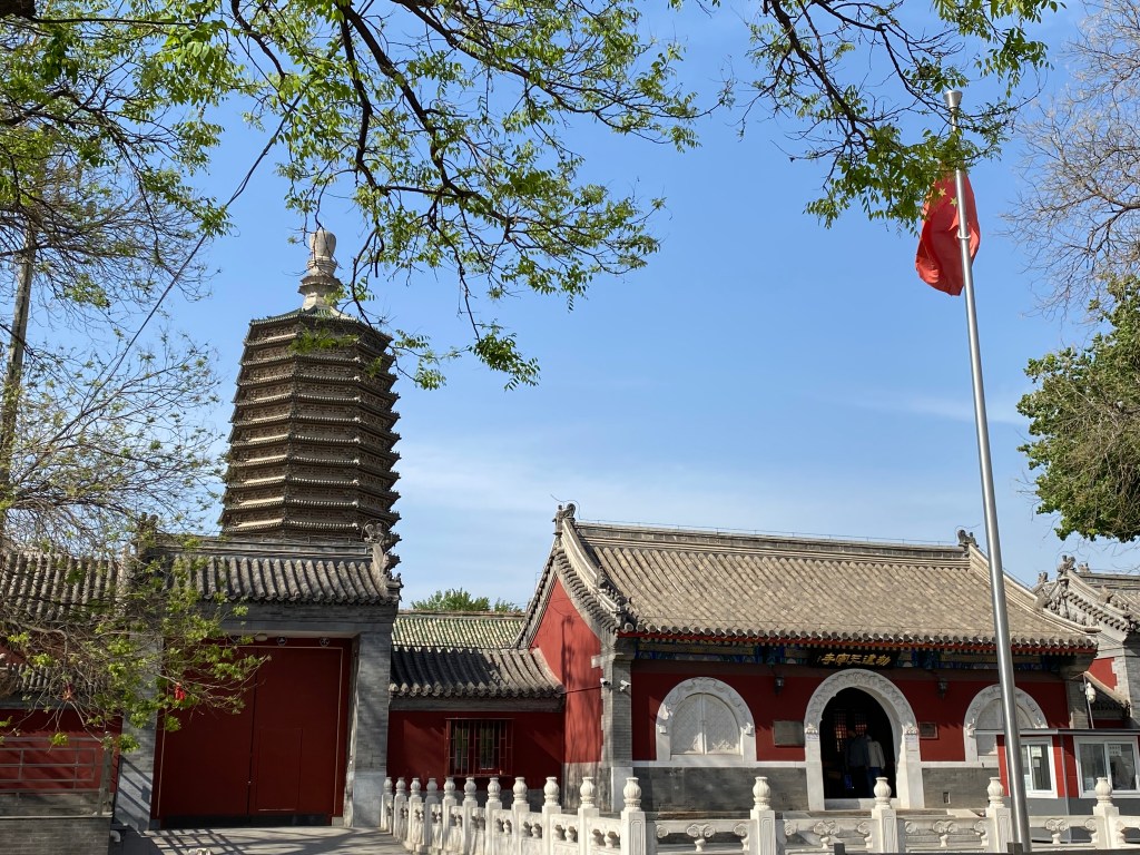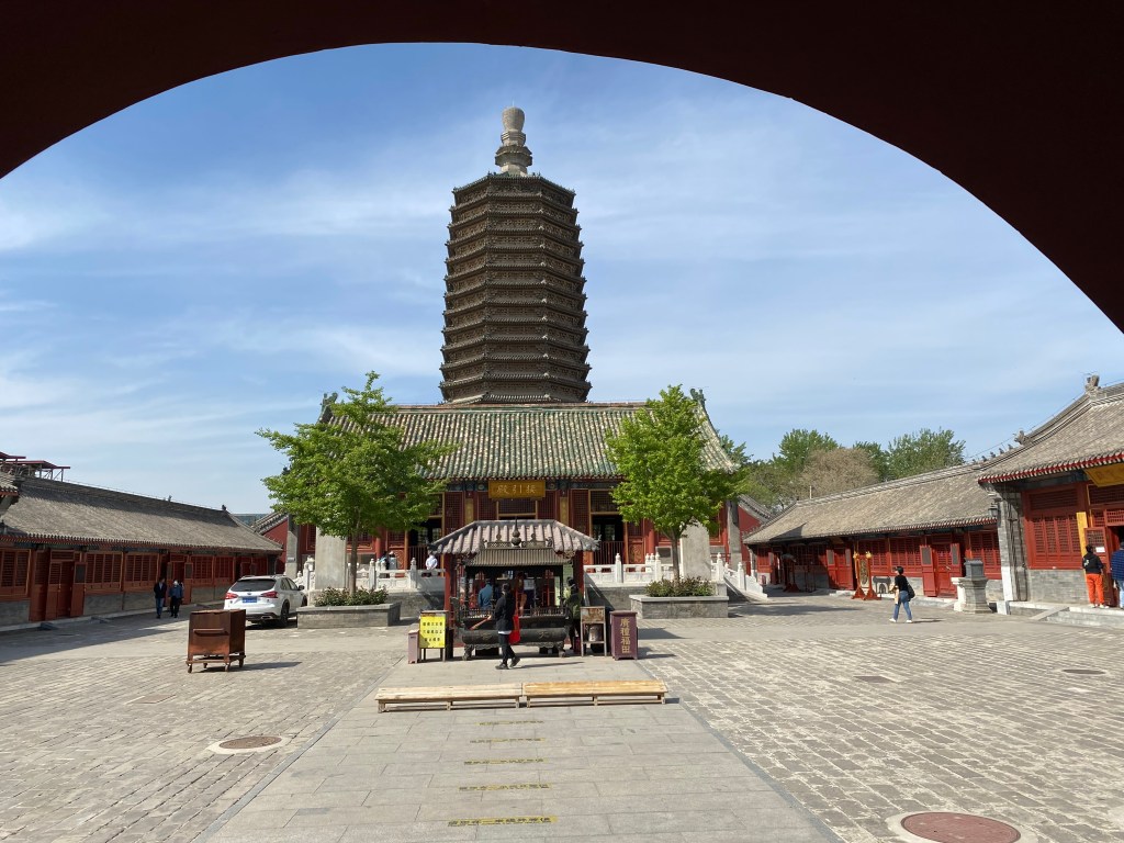 L’endroit est remarquable car il abrite un des plus anciens monuments de Pékin, étonnamment épargné par les excès de la Révolution Culturelle. Je veux parler de cette pagode, haute de 58 mètres de haut, bâtie sous la dynastie Liao, au XIIe siècle.