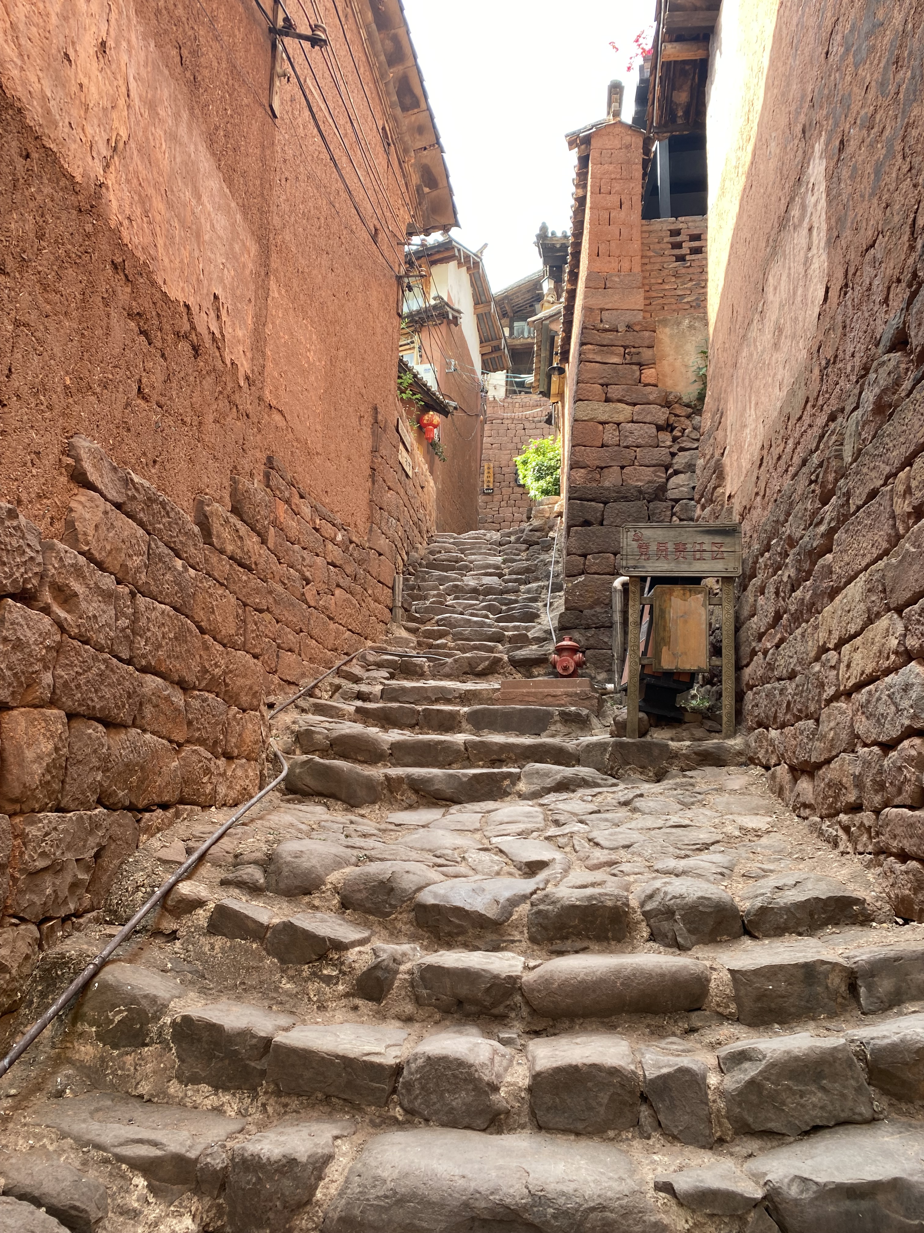 Cheminer sur ces sentes sinueuses, à 2200 mètres d’altitude (bon exercice de cardio !), vous donne une impression de liberté et d’accomplissement, d’autant plus que les touristes sont bien rares, le village est à vous, les autochtones sont bien sympathiques, comme toujours dans le Yunnan. Paix et silence accompagnent vos pas sur les marches.