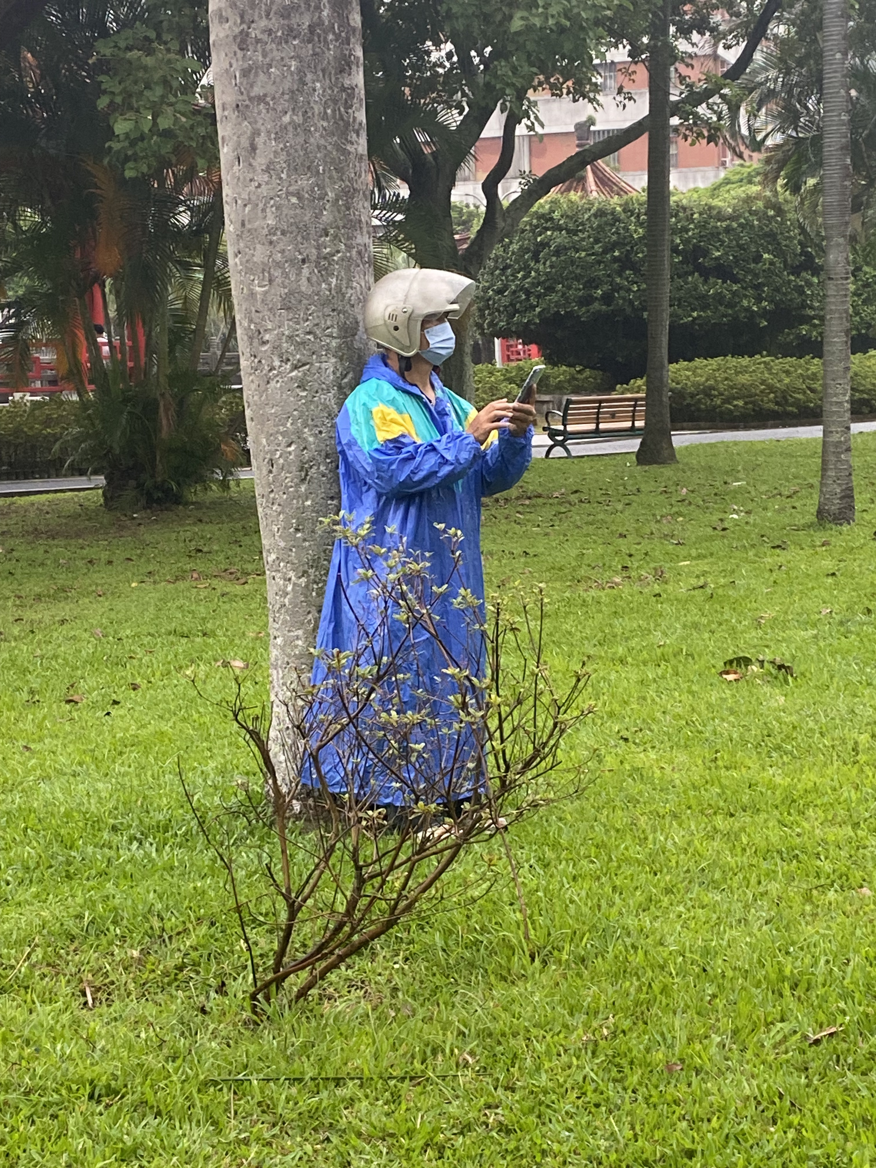 Chemin faisant, sous la pluie et dans le vent, j’ai croisé ces pimpants pavillons ourlés de drapeaux et enserrés dans cette nature tropicale, qui ne dépareraient pas dans un jardin de la capitale chinoise.