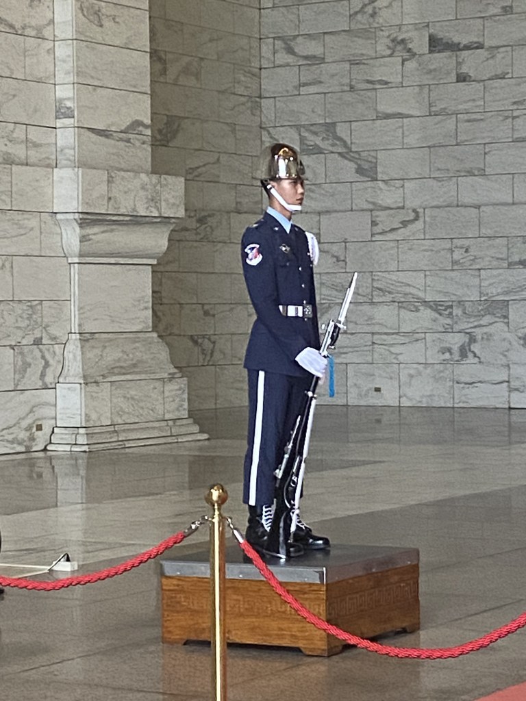 A l’intérieur de ce hall froid et monumental, une statue de Chang Kaï Chek, bien gardée, vous accueille (enfin, si je puis dire, rien d’accueillant ici, simplement de la grandeur qui cherche à impressionner).