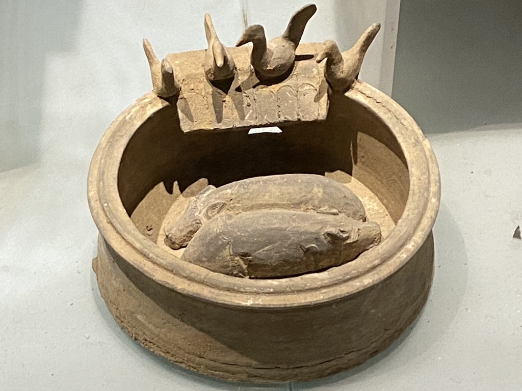 En plus d’être un espace dans lequel on se sent bien, le musée n’oublie pas sa fonction première et présente des objets de grand intérêt. Comme dans bien des musées chinois, pas de référence chronologique, il faut prendre les objets comme ils sont, pour leur signification et leur esthétique sans repère de temps. J’ai même douté au début de leur authenticité, jusqu’à ce que je vois de ça de là des mentions « replica », ce qui m’a conduite à penser (avec une puissance déductive dont je suis très fière 🙂 ) que les autres objets présentés devaient être des originaux.