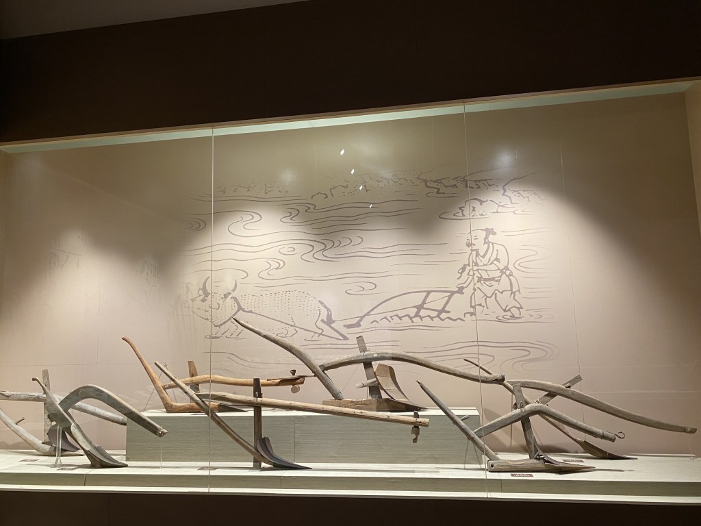 Au gré du chemin, dans un parcours pédagogique (en chinois), qui nous présente les différentes avancées de l’agriculture, nous voyons des ustensiles utilisés dans les travaux des champs, dont certains sont étranges, presque poétiques.