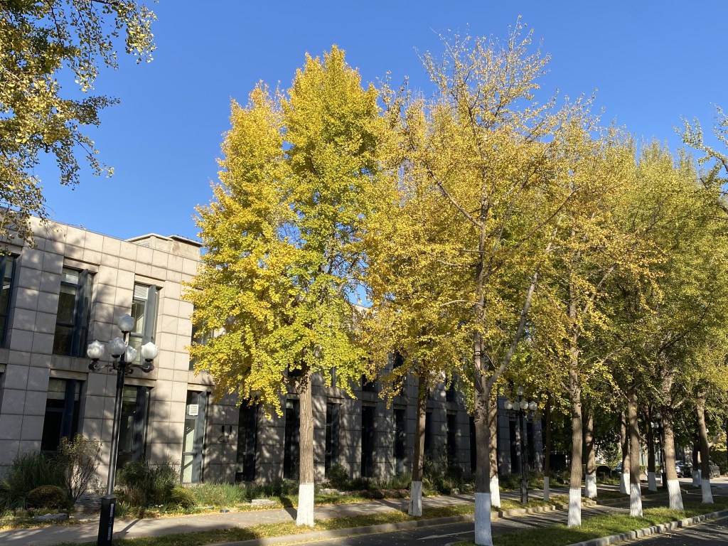 Dès ma sortie, je suis accueillie par l’explosion de couleurs de ces gingkos, qui se sont parés de leurs habits jaunes. Ils font l’objet d’une vraie dévotion à Pékin, nombre de gens vont les voir dans des endroits bien précis, presque en pélerinage annuel et il suffit d’éviter ces lieux d’affluence pour être seul(es) à les contempler dans toute leur splendeur.