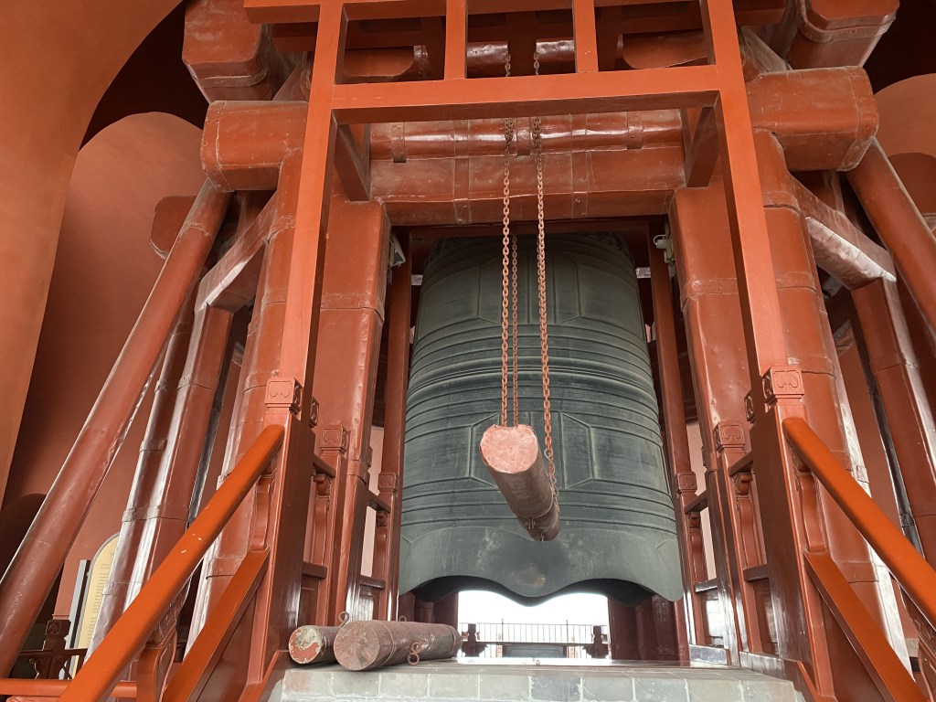 J’ai beaucoup aimé cette dame de bronze, nichée au coeur de tous ces étais de bois rouge, qui veille sur Pékin, telle une vigie silencieuse, depuis qu’on l’a privé de sa voix depuis les années 1930. Elle nous apprend beaucoup sur la manière dont les Chinois appréhendaient le temps.