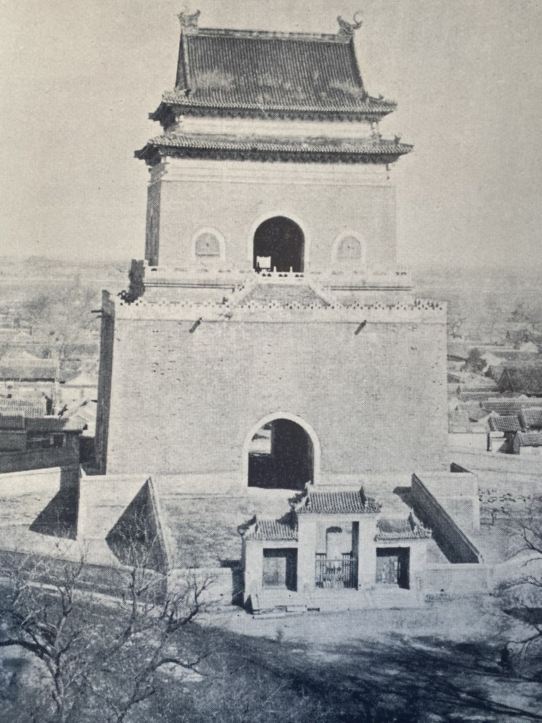La première, la Tour du Tambour (fermée depuis que je suis arrivée à Pékin, je l’ai vue récemment emballée dans des treillis de plastique qui ont désormais disparu, et je caresse l’espoir de la visiter avant mon départ), a été rebâtie en 1420 par l’Empereur Yongle, de la dynastie Ming, sur les vestiges de l’ancienne tour de bois qui faisait le centre de Dadu, la capitale de la dynastie des Yuan (XIIIe/XIVe siècles). Quand nous pourrons nous y rendre, nous pourrons admirer les 24 tambours qui rythmaient les heures dans la cité. Il me tarde !