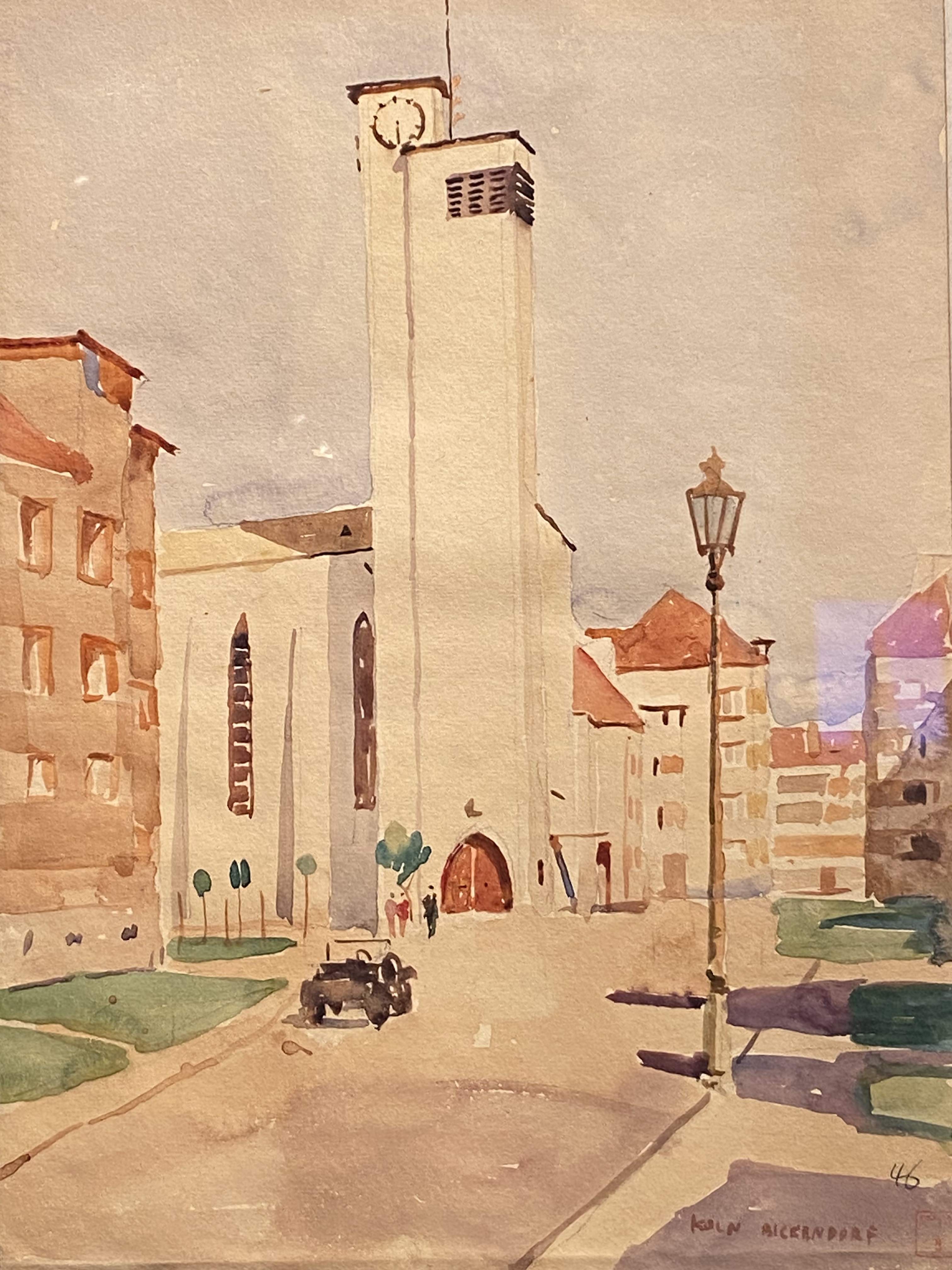 En Allemagne, il s’intéresse également aux bâtiments modernes, tel cet édifice de Cologne ou encore ce siège d’entreprise à Stuttgart, pour lequel il n’emploie que du crayon gris pour mieux montrer la modernité du bâtiment.