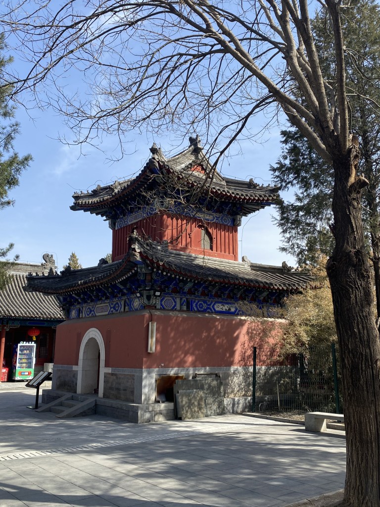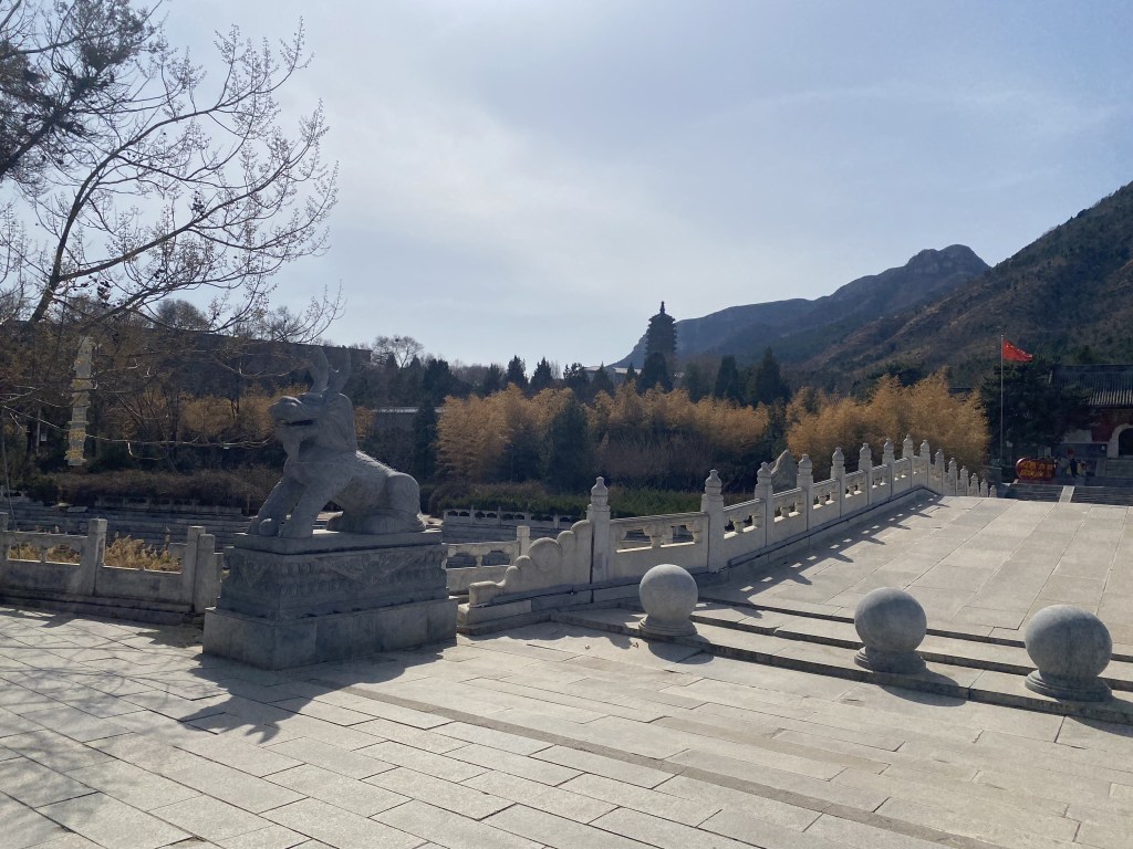 J’ai ressenti ici une paix hors du temps. Très peu de visiteurs, la plupart étant des fidèles qui faisaient des offrandes aux divinités bouddhistes, j’ai été régénérée par la beauté religieuse du lieu, la chaleur du soleil de printemps et l’air pur des montagnes alentour (d’aucuns m’ont expliqué que Pékin était très pollué ce jour-là, a priori pas partout).