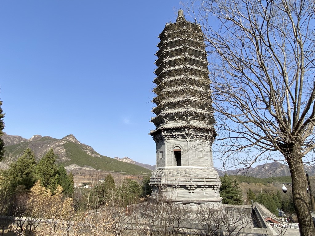 La première, la Pagode du Sud, a été bâtie sous la dynastie Liao (916-1125) et sévèrement endommagée par la Guerre Sino-japonaise. L’histoire dit que les fusillades ont fait tomber une plaque gravée qui a permis de retrouver de très nombreuses plaques d’écriture des époques Liao et Jin, jusque là cachées.