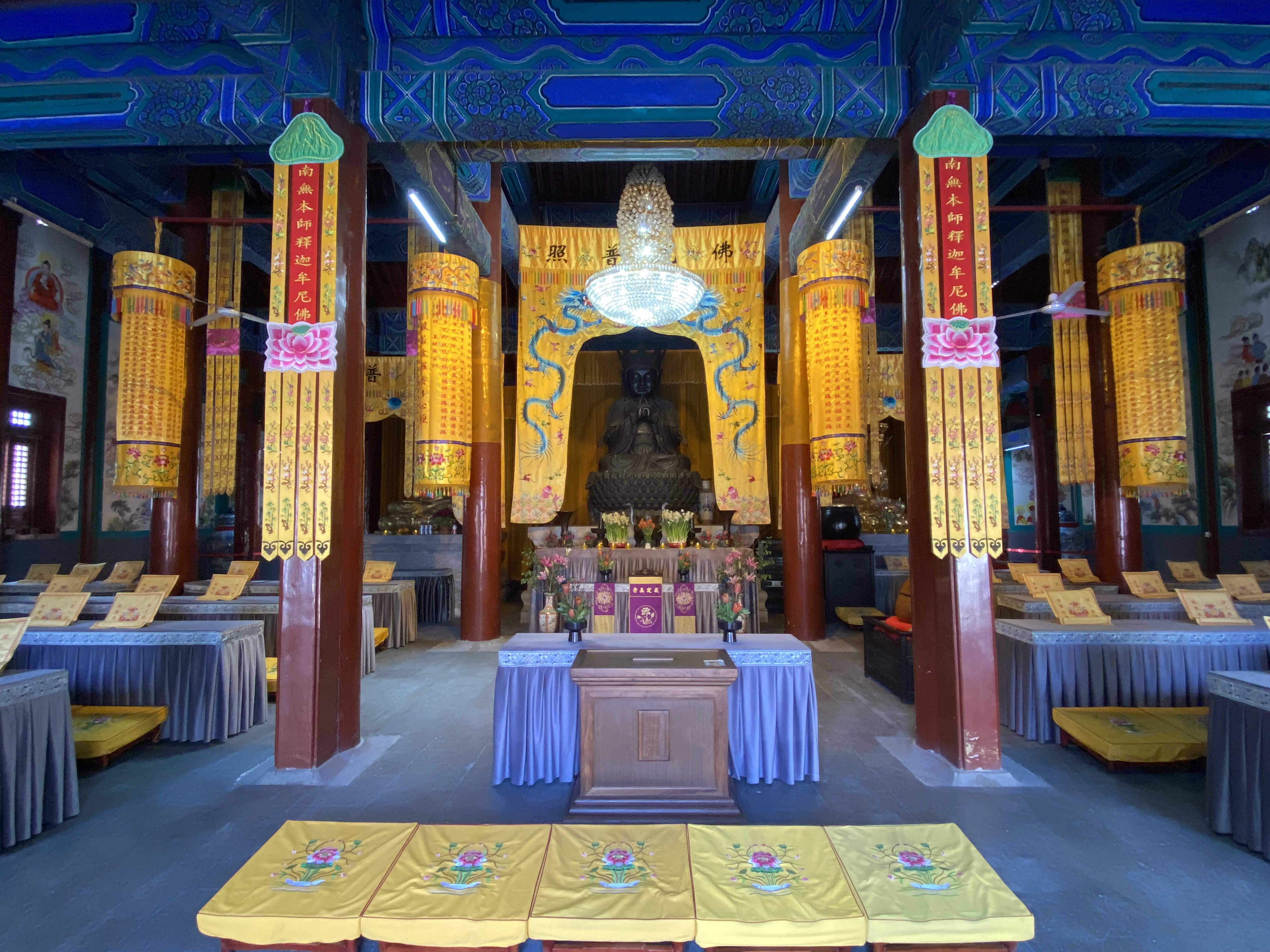 Le premier hall est dédié au Bouddha Vairocana « l’Illuminateur », je retrouve ici les couleurs vives que j’avais vues au Tibet, toutes les salles suivantes porteront ensuite cette esthétique.
