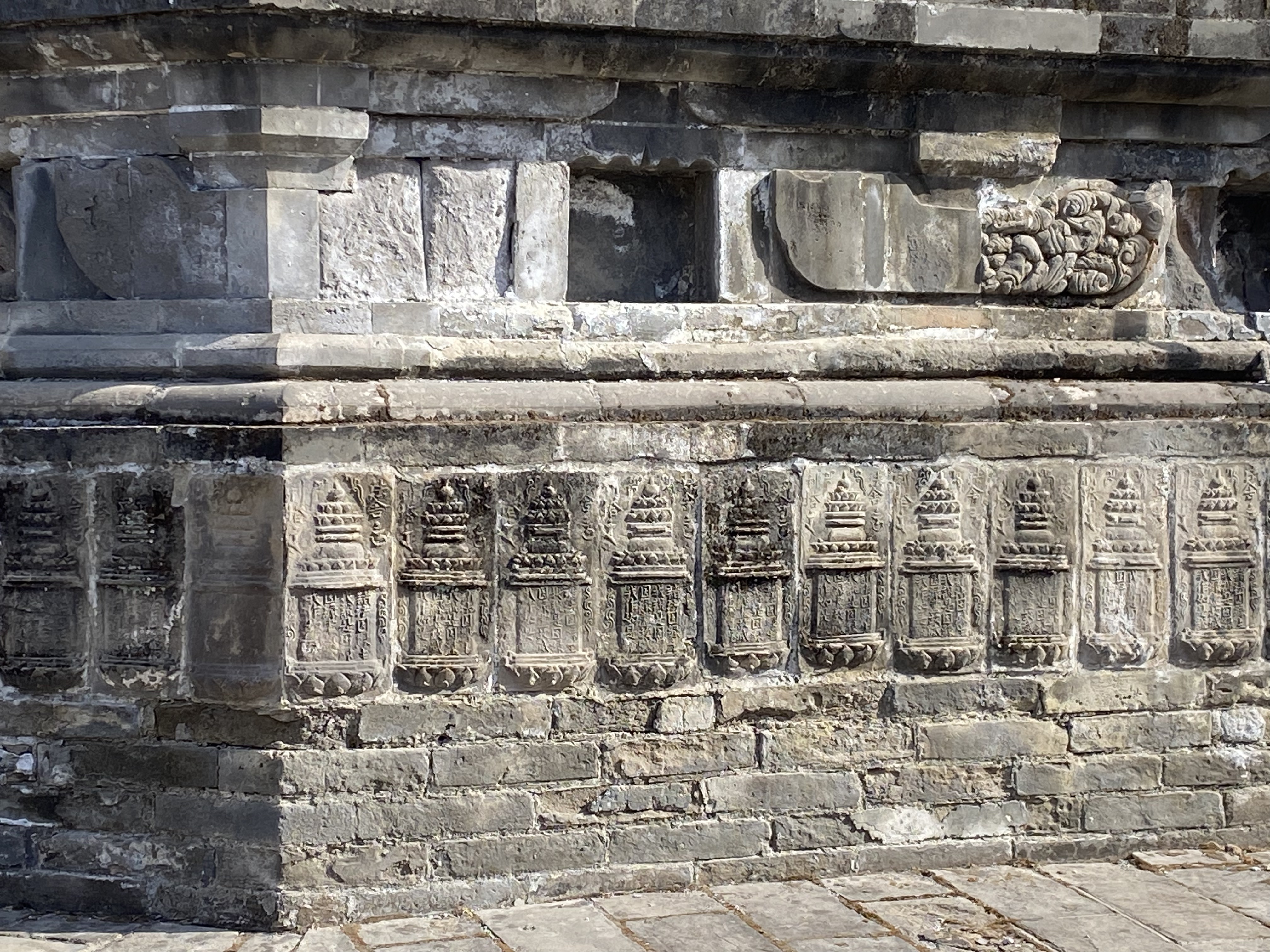La Pagode du Nord m’a semblée encore plus belle. Plus ancienne (certaines parties remontent aux VIe/VIIe siècle et un peu plus haute (34 mètres) mais aussi très différente, faite d’une pierre presque jaune gravée de sculptures très raffinées.