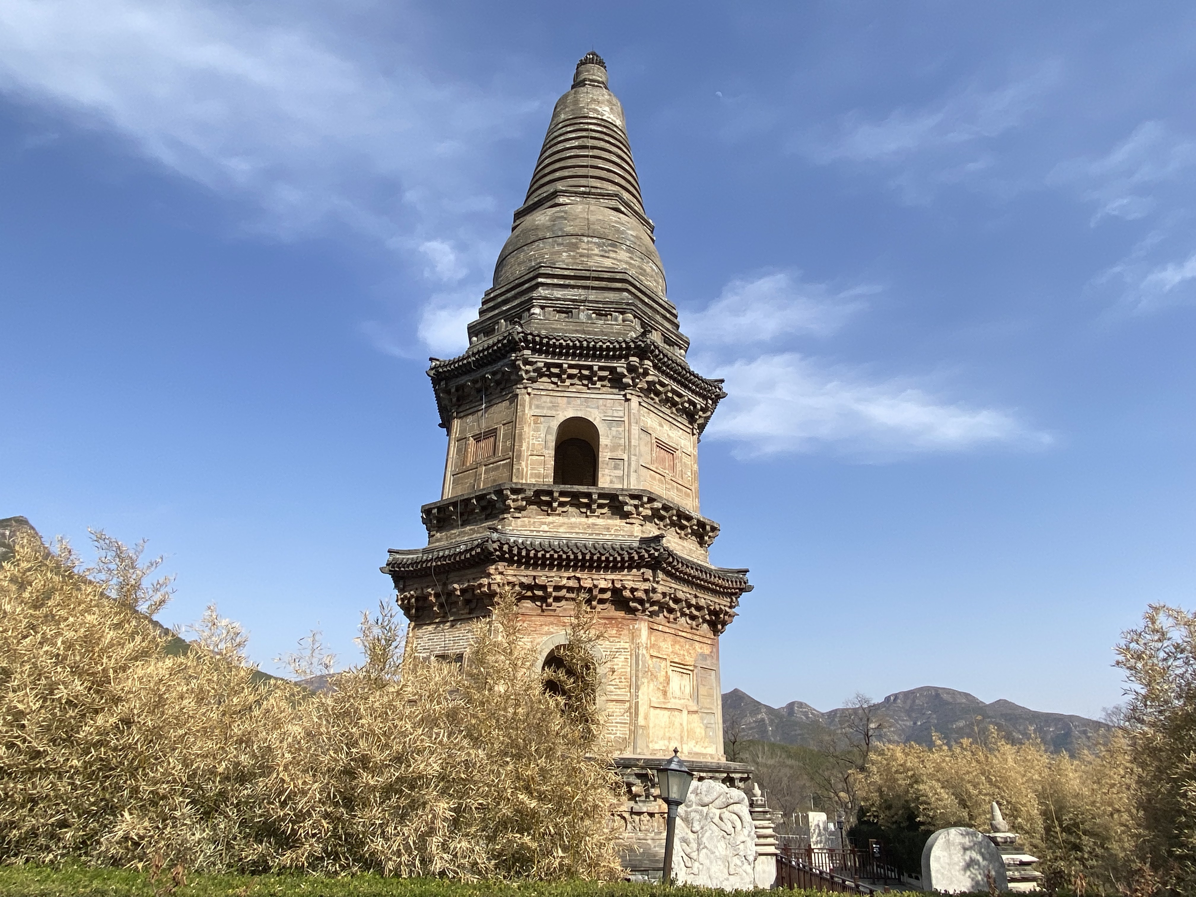 Elle donne sur un promontoire où trois tombes en forme de stupa abritent les restes de trois prestigieux abbés de l’époque Qing.