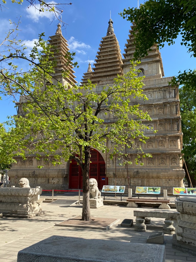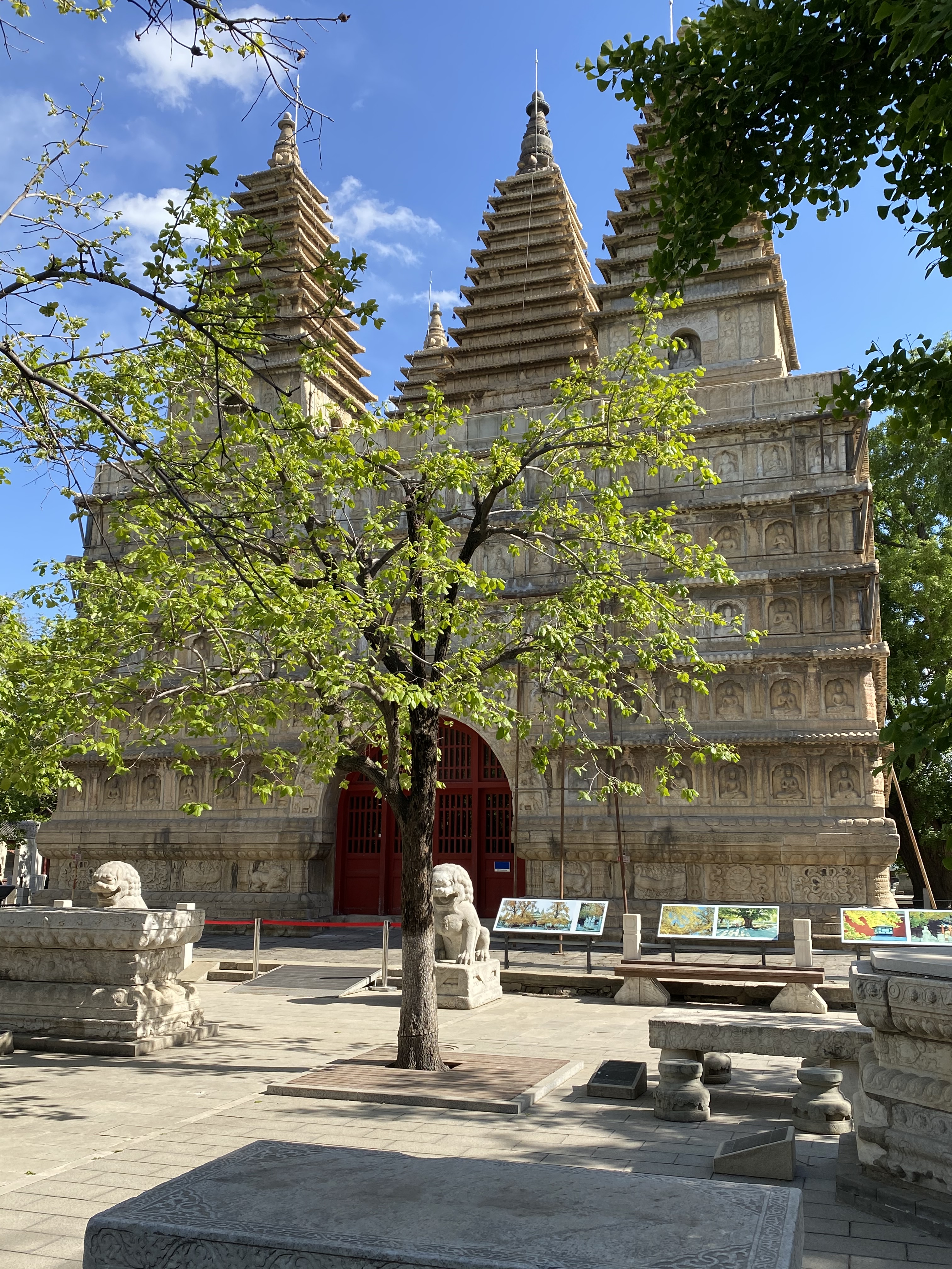 C’est un petit temple curieux, en forme de puzzle, que je trouve très intéressant. Je suis allée le voir deux fois déjà, il est situé à Haidian, dans l’ouest de Pékin, dans un environnement urbain et bucolique à la fois. Lors de sa construction en 1473, il a reçu pour nom Temple Zhenjue (真觉寺, Temple de l’éveil vertueux) mais a rapidement été surnommé « Temple aux cinq pagodes » (wutasi), en référence à l’étonnant édifice principal.