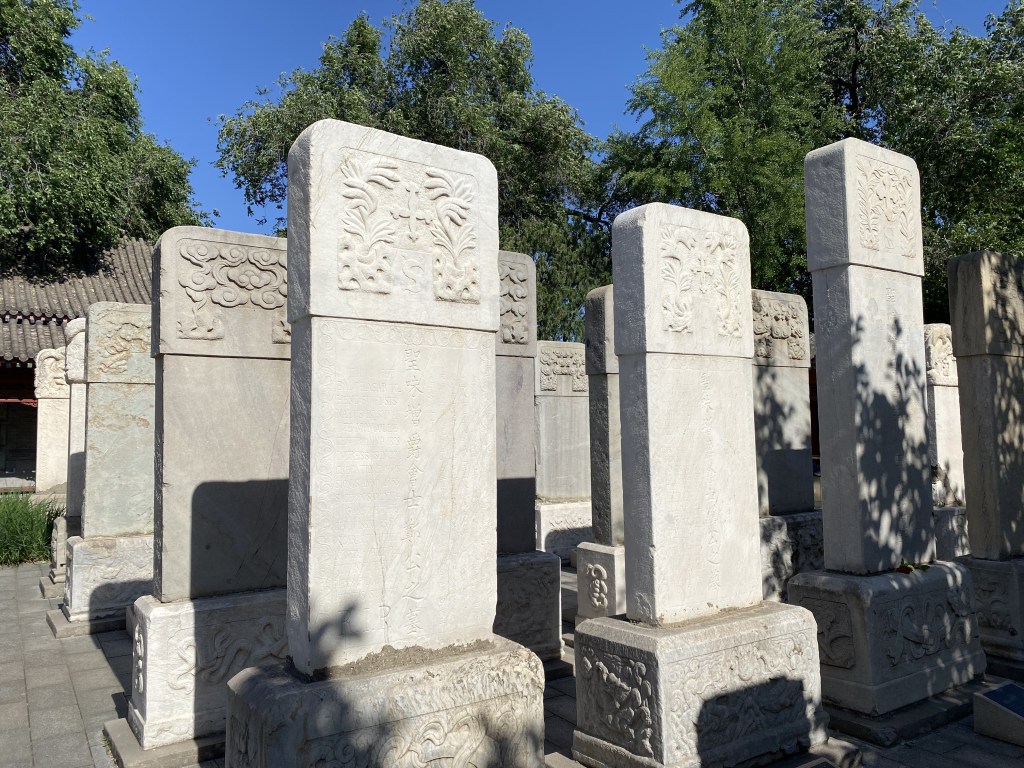 La première fois que je suis allée voir ce temple, c’était en mai 2021, la pandémie m’avait empêchée de rentrer en France depuis presque neuf mois, cela a été pour moi une vraie émotion de lire ces noms, par exemple ceux de Jean-Mathieu de Ventavon ou de Jean-Joseph-Marie Amiot, comme autant de compatriotes lointains et rassurants à la fois.