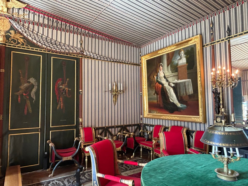 Ce château, où elle a vécu avec Napoléon, elle l’a fait sien en convoquant les meilleurs architectes pour remodeler le lieu selon les canons esthétique du Premier Empire. Après sa mort, le château légué à son fils Eugène de Beauharnais est vendu par sa veuve en 1828, puis racheté par Napoléon III, petit-fils de Joséphine, qui par amour pour sa grand-mère, va s’atteler à restaurer le lieu, faisant remeubler les pièces avec du mobilier utilisé par elle ou son Empereur de mari. Et c’est une merveille.